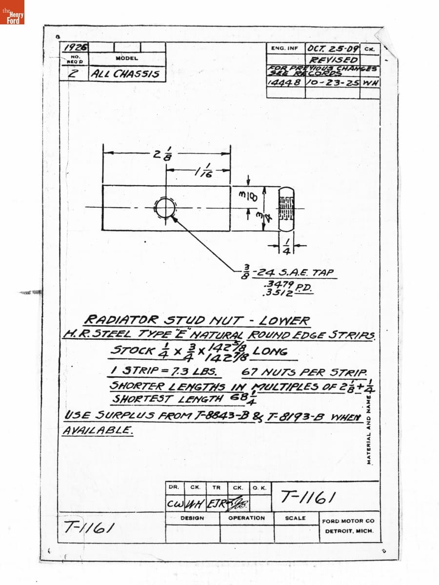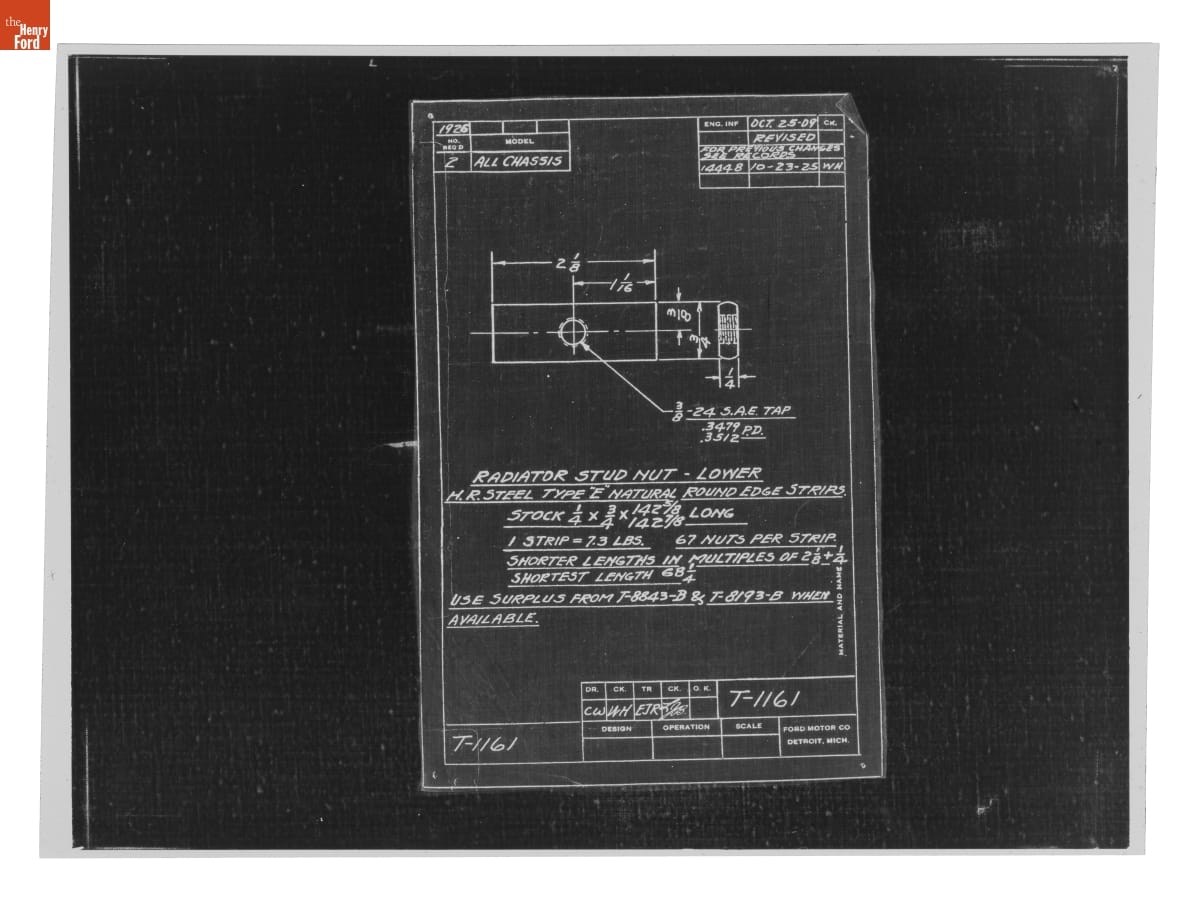 Drawing, "Radiator Stud Nut - Lower," Ford Model T, October 23, 1925