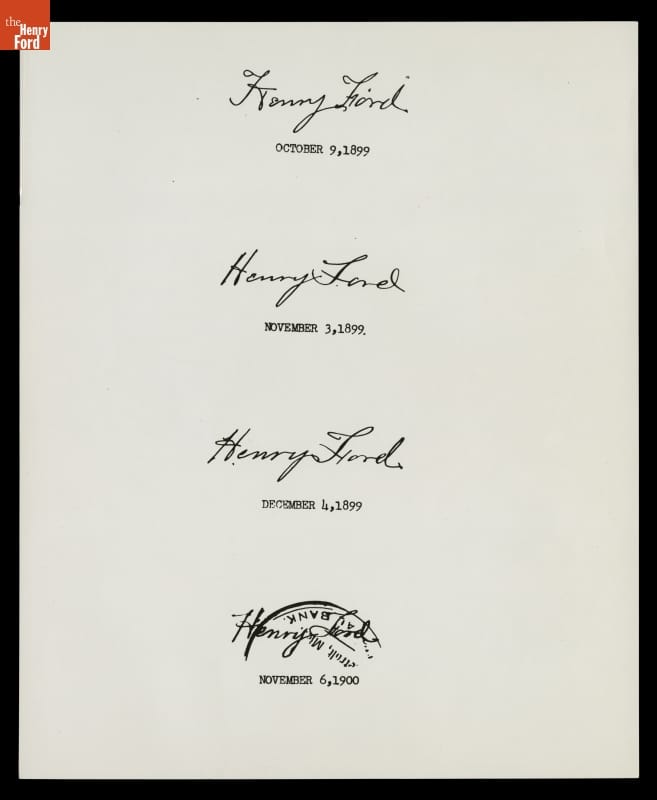 Samples of Henry Ford's Signature from 1899-1900