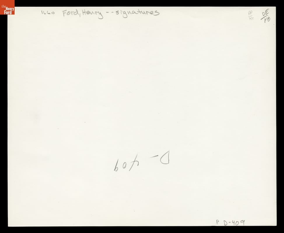 Like the Walt Disney Company, Ford Motor Company's logo features its founder's name in a flowing script. Also like Disney, Ford's logo isn't a direct copy of its founder's handwriting. C. Harold Wills, a Ford engineer and a former letterpress printer, created the distinctive logo script with his typesetting kit in 1906. Henry Ford's actual signature is seen here.
