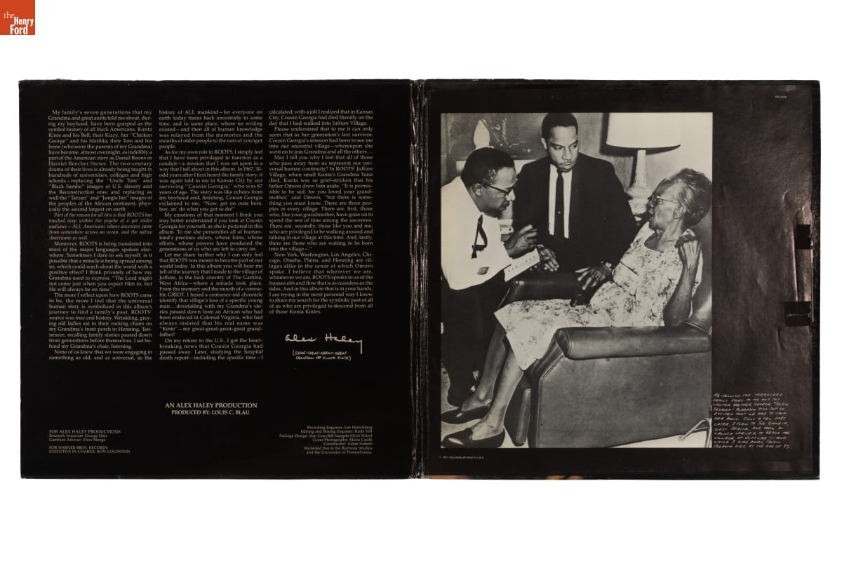 Spoken-work album by Alex Haley. Produced by Louis C. Blau and Alex Haley Productions. Issued by Warner Bros. Records.