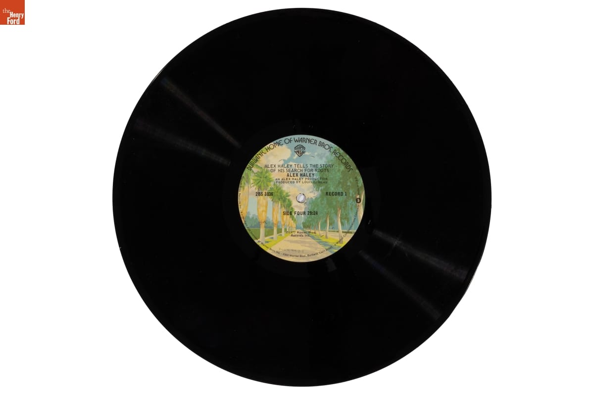 BURBANK, HOME OF WARNER BROS. RECORDS / WB / ALEX HALEY TELLS THE STORY / OF HIS SEARCH FOR ROOTS / ALEX HALEY / AN ALEX HALEY PRODUCTION / PRODUCED BY LOUIS C. BLAU / 2BS 3036 RECORD 1 / SIDE FOUR 29:24 / (R)1977 Warner Bros. / Records Inc. / [...]