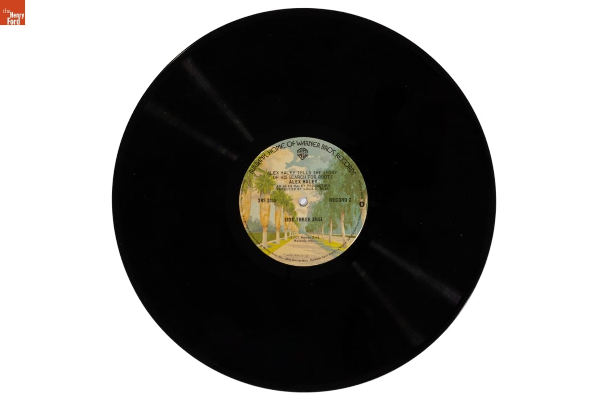 BURBANK, HOME OF WARNER BROS. RECORDS / WB / ALEX HALEY TELLS THE STORY / OF HIS SEARCH FOR ROOTS / ALEX HALEY / AN ALEX HALEY PRODUCTION / PRODUCED BY LOUIS C. BLAU / 2BS 3036 RECORD 2 / SIDE THREE 29:51 / (R)1977 Warner Bros. / Records Inc. / [...]
