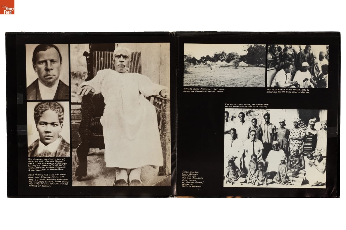 On this album, I try / to share my adventure / of the past 12 years. It / began as only a per- / sonal family search. It / grew into a published / book - ROOTS - with / results that are hard / for me to comprehend. / Continued Inside / A DOUBLE RECORD PACKAGE / [...]