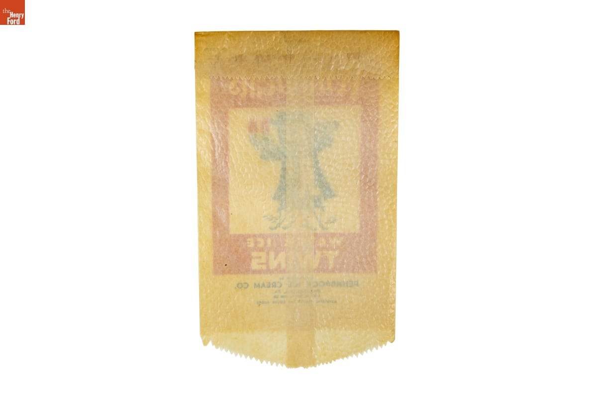 Companies began packaging single-serving frozen ice treats and ice cream bars in waxed paper bags during the mid-1900s. The inexpensive packaging, printed with the company's name, logo, and often an illustration of the contents, ensured that vendors delivered the precise serving to customers who could take the delicious cold confection with them to enjoy.