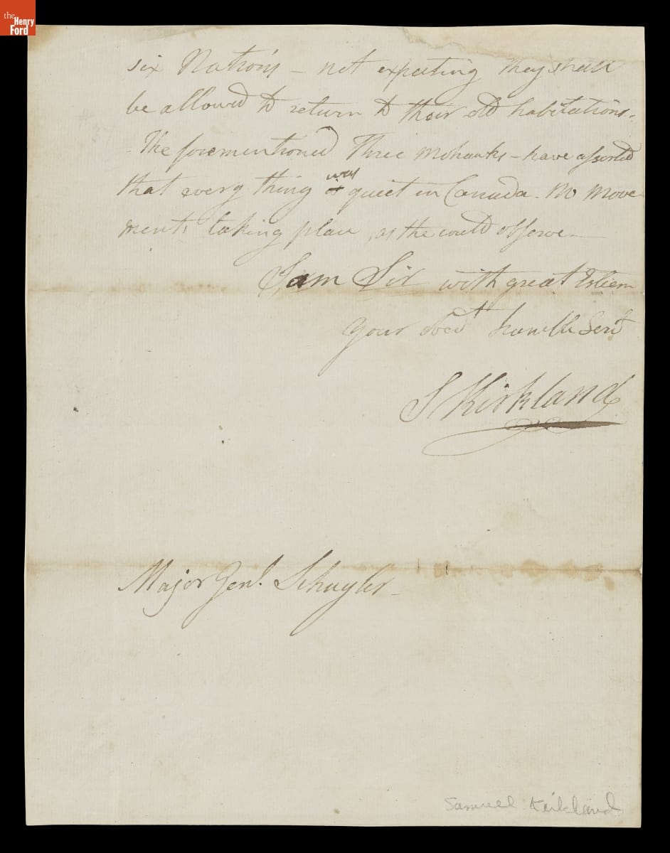 Letter from Samuel Kirkland to Major General Philip John Schuyler, 1778