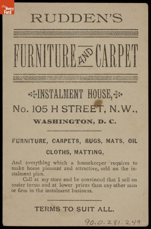 Trade Card for Furniture and Carpet Store, Rudden's Instalment House, 1870-1900