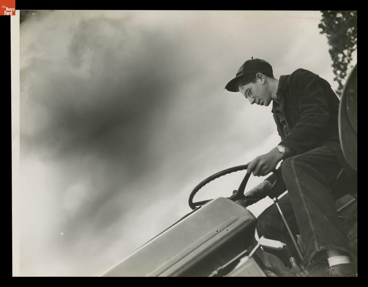 Max Camburn from Macon (Michigan) High School Driving a Ford 9N Tractor, September 1943