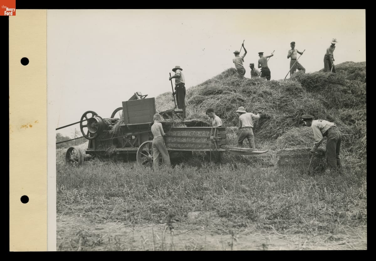 Macon (Michigan) High School Students Working on a Farm, Pitching Straw into a Baler, August 1943