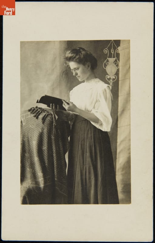 Woman Reading a Book in a Photographic Studio Portrait, 1908