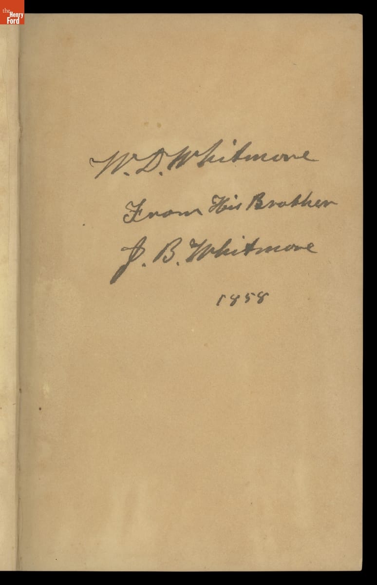 W.D. Whitmore / From His Brother / J.B. Whitmore / 1858