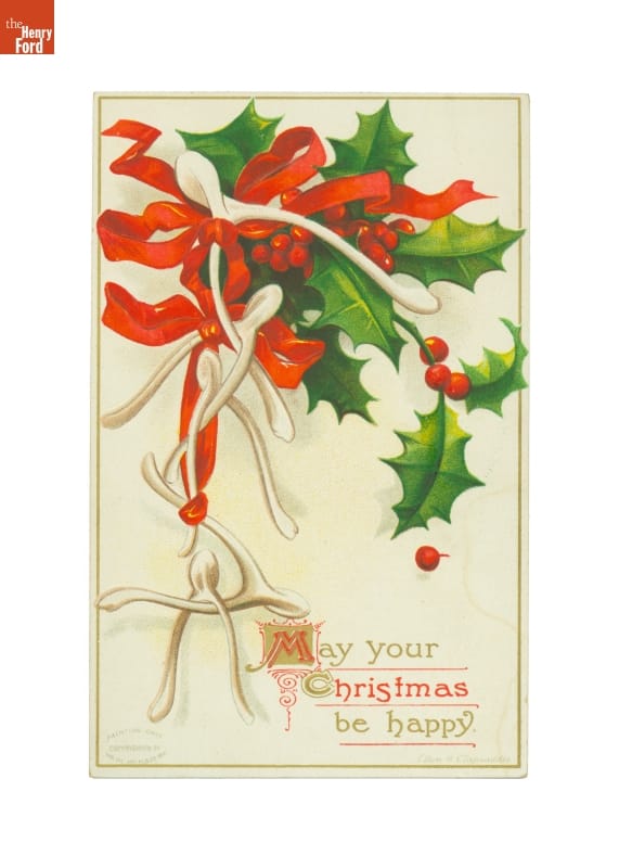 Colorful, commercially designed greeting cards were popular in early 20th-century America--especially during the holidays. Friends and neighbors commonly exchanged cards wishing one another a Merry Christmas or Happy New Year. Publishers sometimes decorated these cards with images of greenery symbolic of the season.