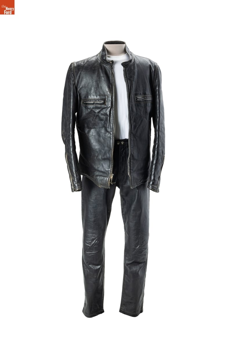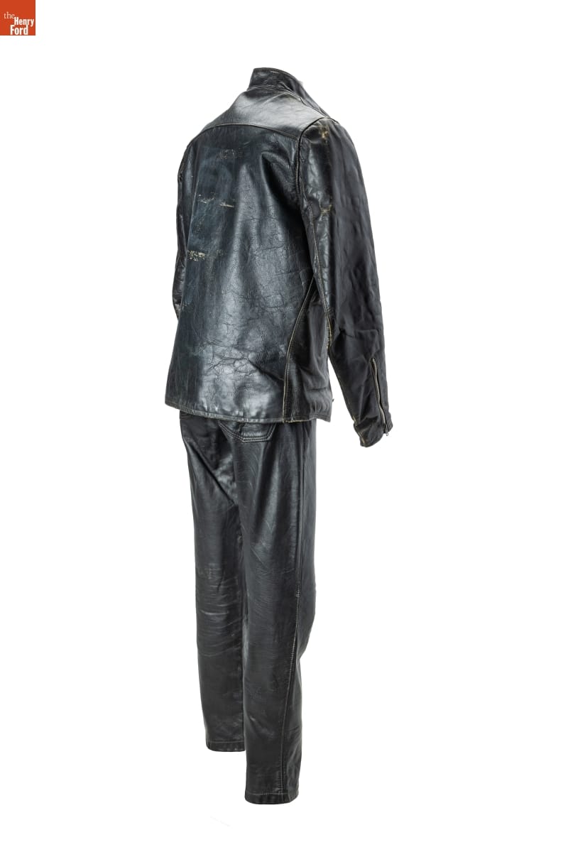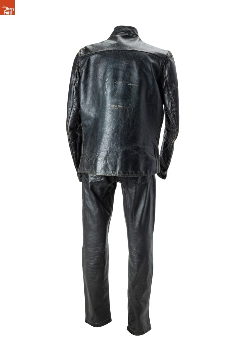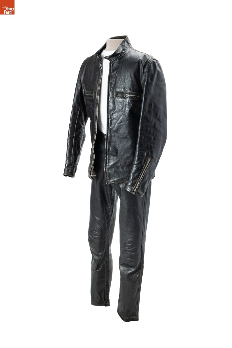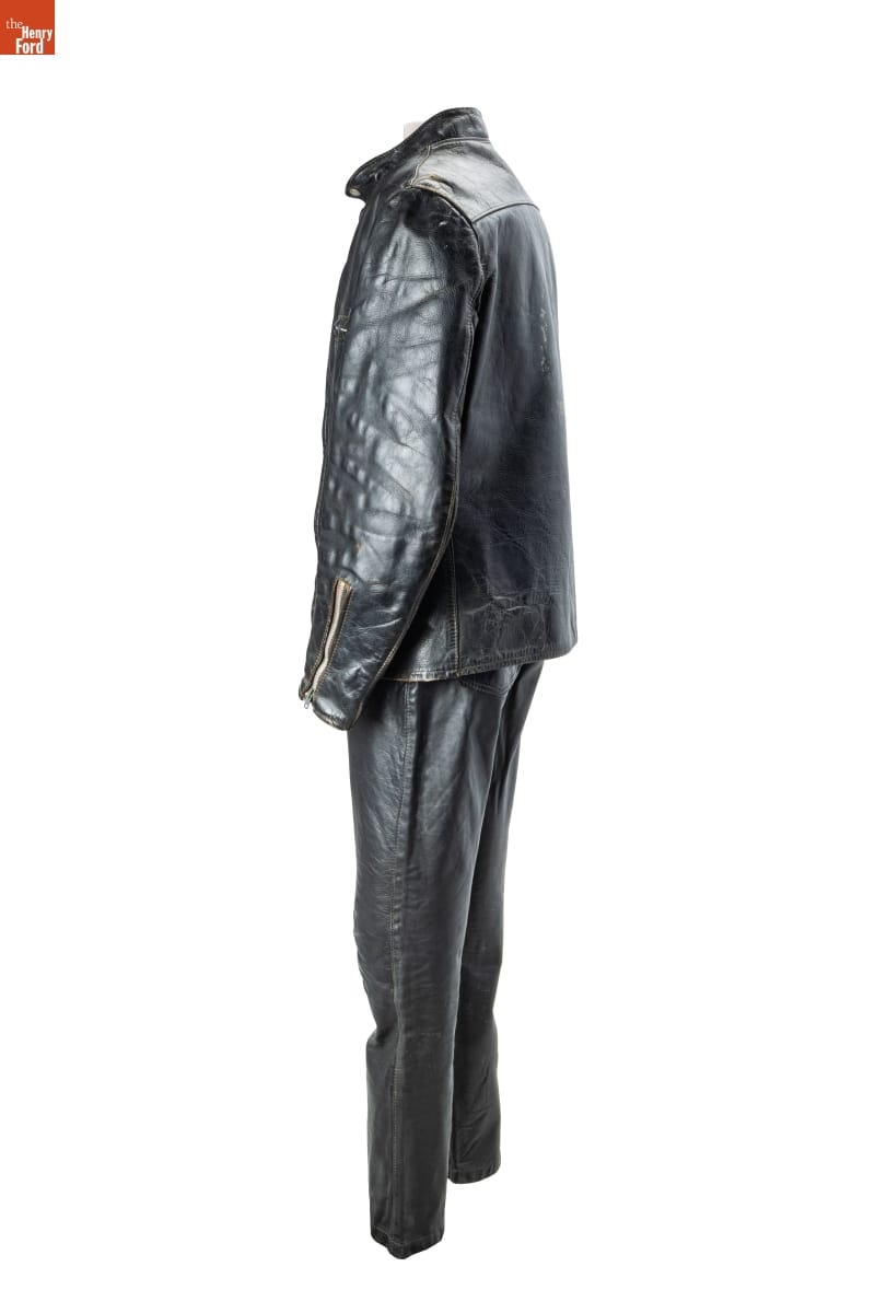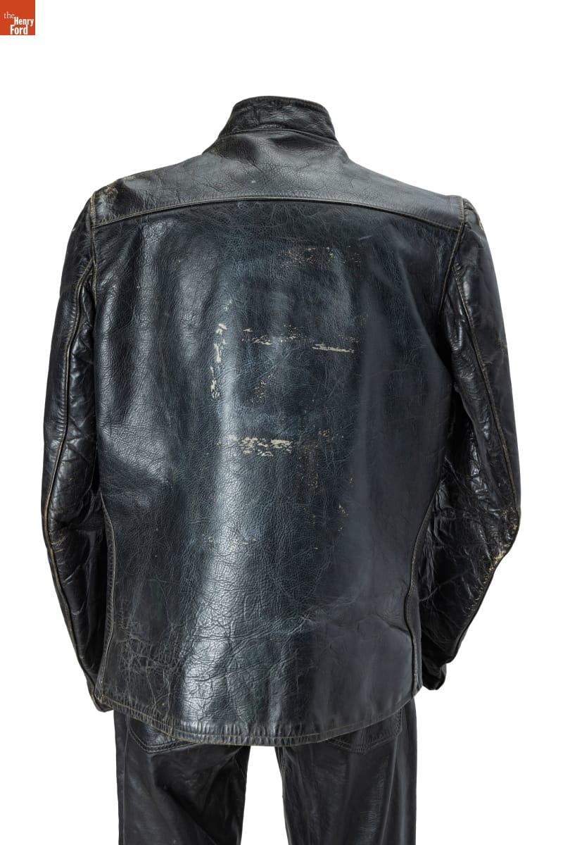 Amateur racers Barry Egen and Wayne Snyder of Monroe, Michigan, competed with their custom-built motorcycle at nearby Milan Dragway in the late 1960s. The bike, named "Revolution," was powered by a 350-cubic-centimeter, straight-twin Honda engine and posted race times in the low 12-second range. Egen wore this protective leather jacket when racing.