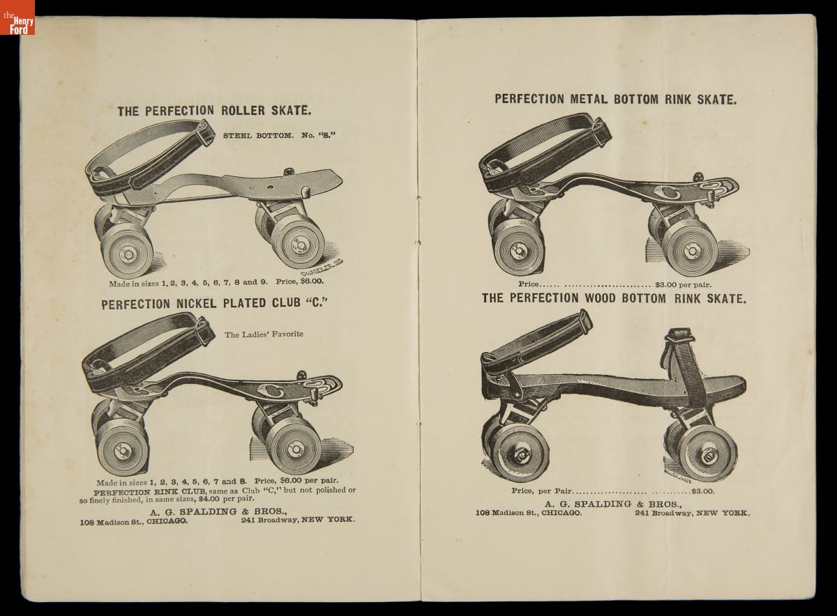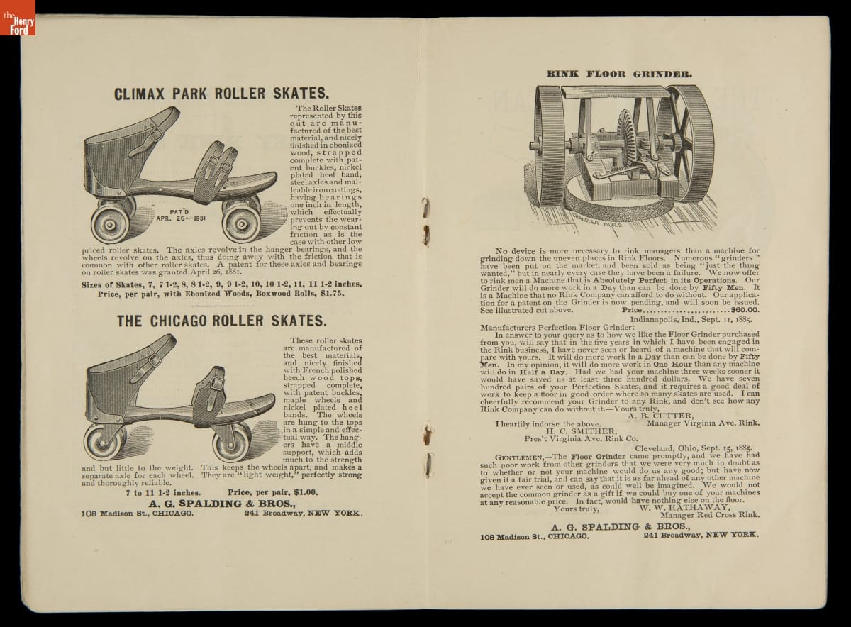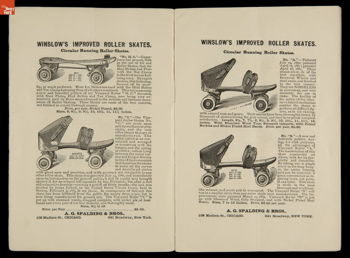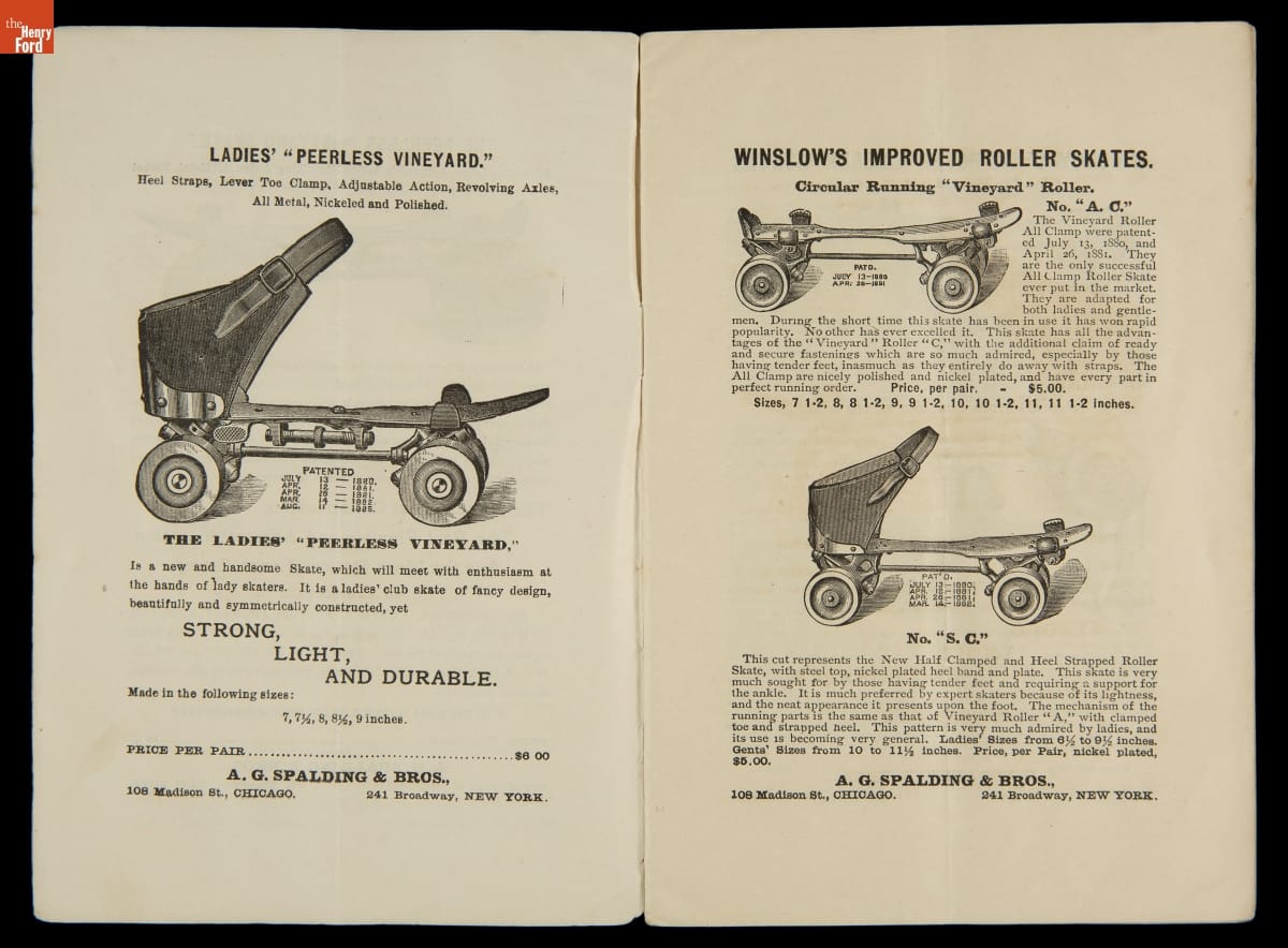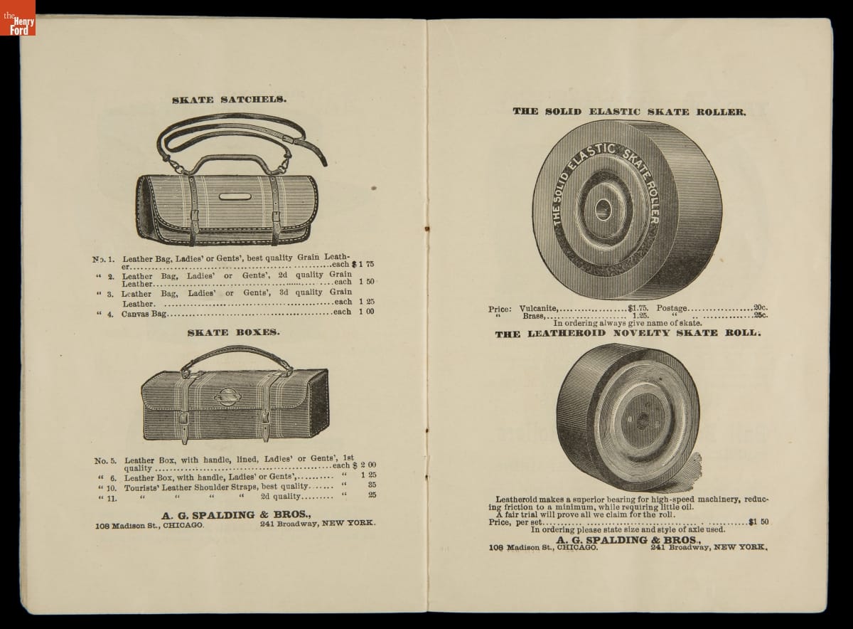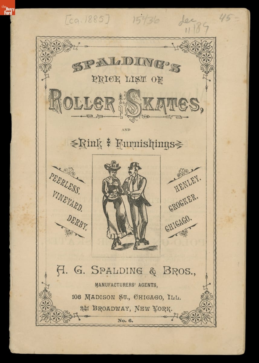 Albert Goodwill Spalding and his younger brother James formed A. G. Spalding & Brothers, a sporting goods company, in 1876. The company would become a leader in the industry in the late 1800s, producing equipment for baseball, basketball, football, golf, and all sorts of sporting activities. This catalog for roller skating goods included rules for playing polo (hockey) on skates.