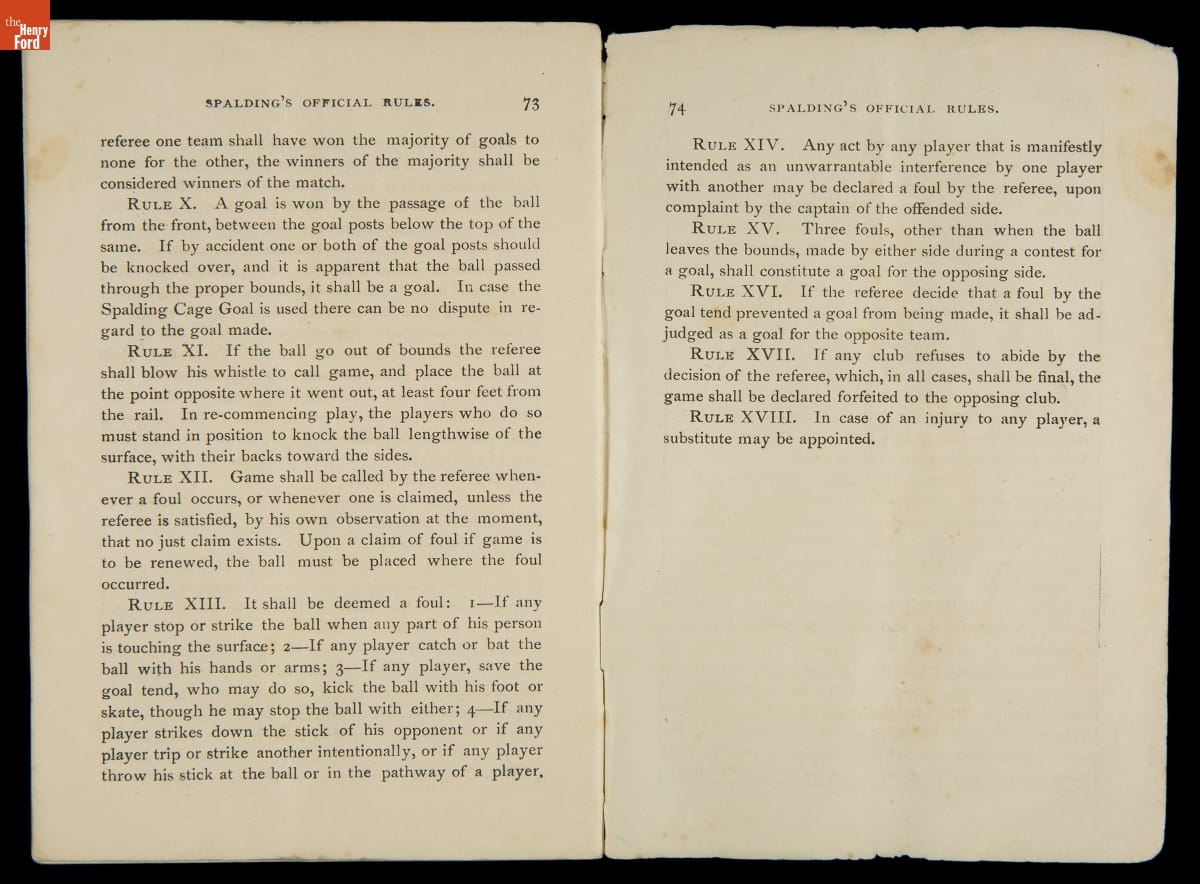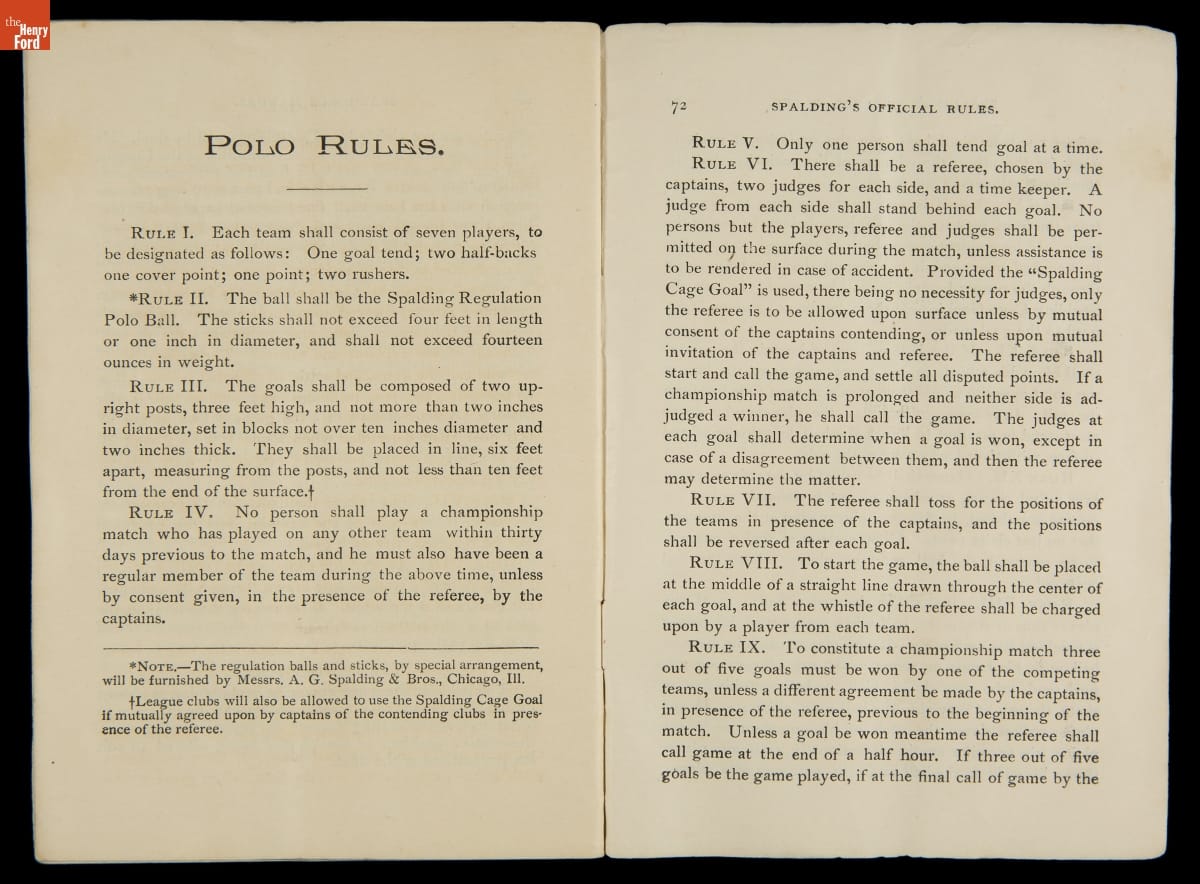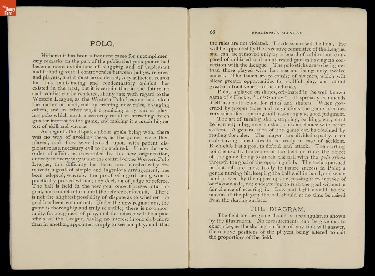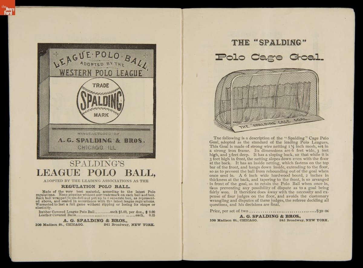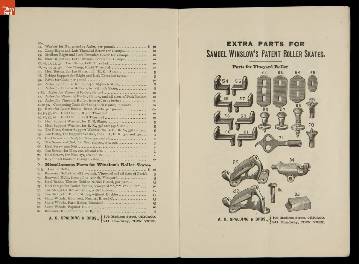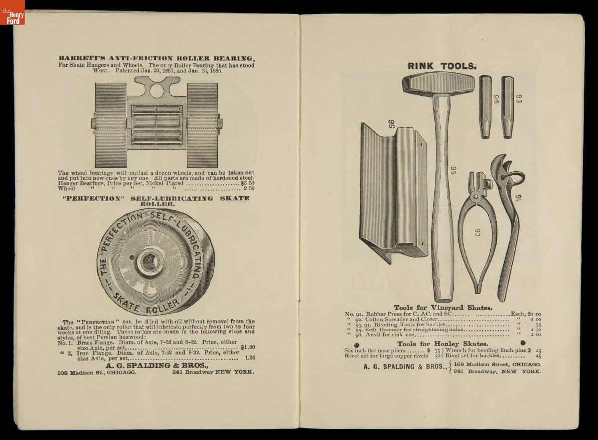 Albert Goodwill Spalding and his younger brother James formed A. G. Spalding & Brothers, a sporting goods company, in 1876. The company would become a leader in the industry in the late 1800s, producing equipment for baseball, basketball, football, golf, and all sorts of sporting activities. This catalog for roller skating goods included rules for playing polo (hockey) on skates.