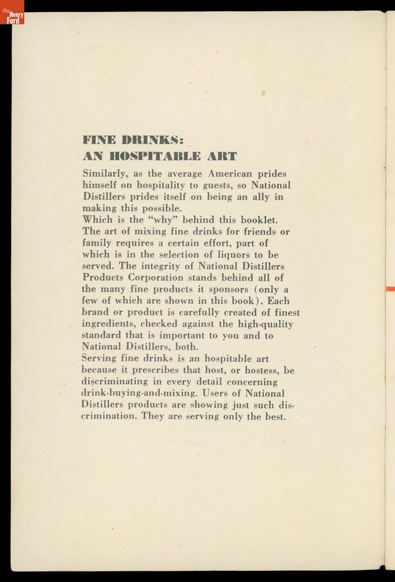 Cocktail parties were the essence of sophistication in the 1950s. Throwing a cocktail party -- whether to impress business associates or entertain neighbors -- was the "in" thing to do. The right drinks and food helped guarantee cocktail party success. Handbooks like this provided helpful advice and recipes for eager hosts and hostesses.