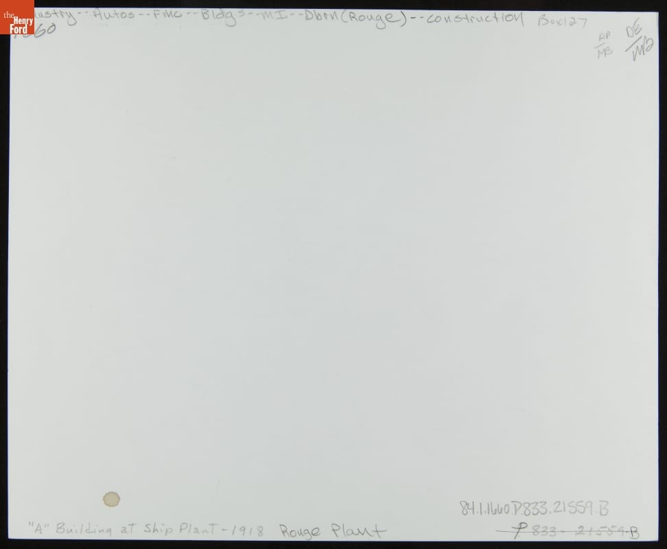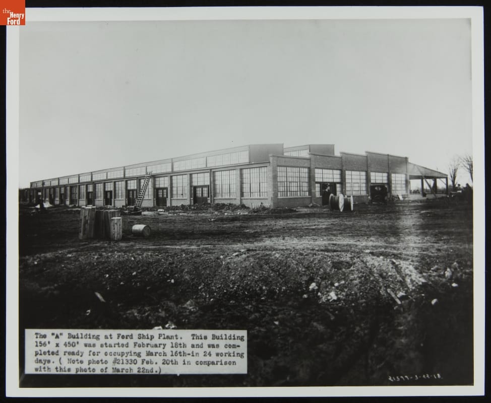 Ford Rouge Plant "A" Building, First Structure of the Eagle Boat Factory, March 1918