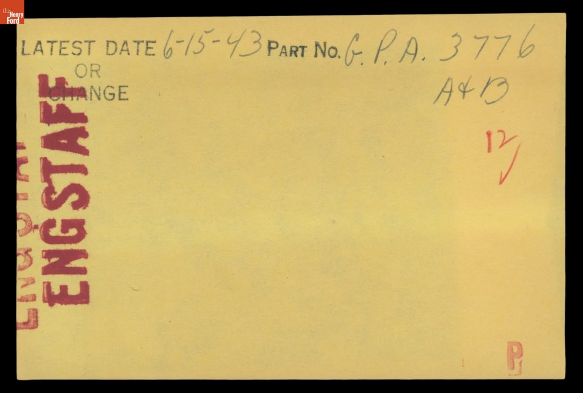 The Ford Motor Company created over a million parts drawings from 1903 to 1957. Many of these drawings specify engineering requirements for the components of Ford-made vehicles--including automobiles, trucks, tractors, military vehicles and Tri-motor airplanes. Others document assembly components, stages of casting and forging, or experimental designs. Beginning in the 1940s, Ford transferred the drawings to microfilm.