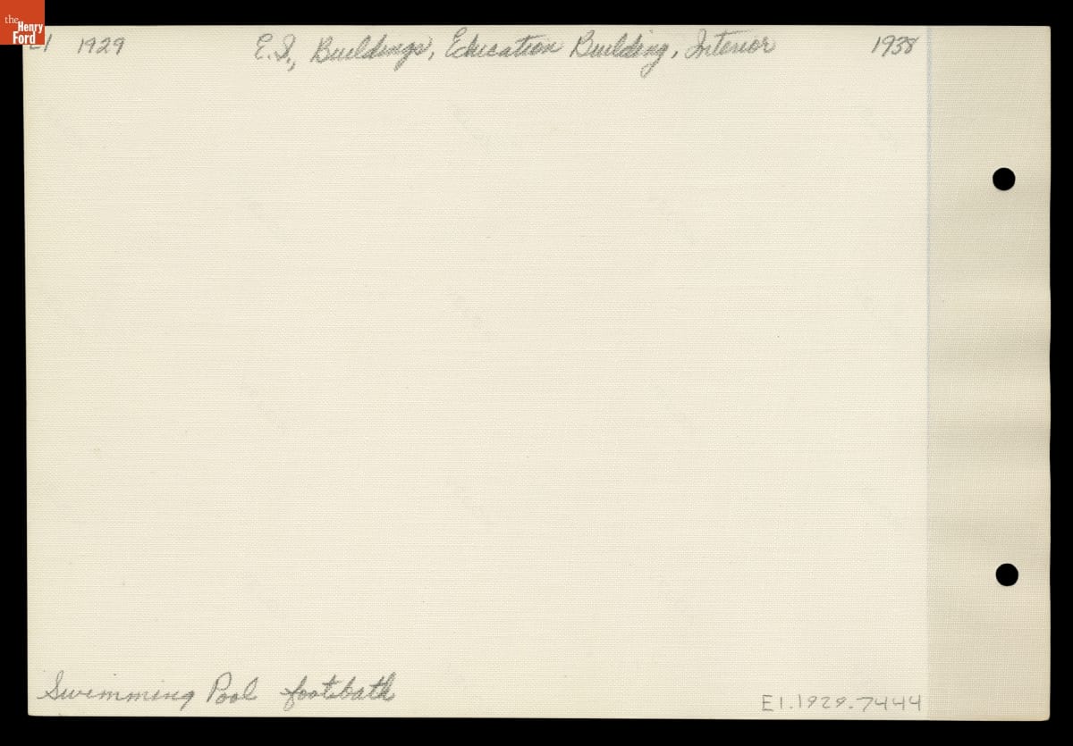 Lovett Hall, located on the campus of The Henry Ford and originally called the Recreation or Education Building, was built for various purposes. It contained a library, classrooms, gymnasium, and even a swimming pool (seen here) for Henry Ford's school system. The building also housed a ballroom for Henry Ford's "Old Time" dancing parties.