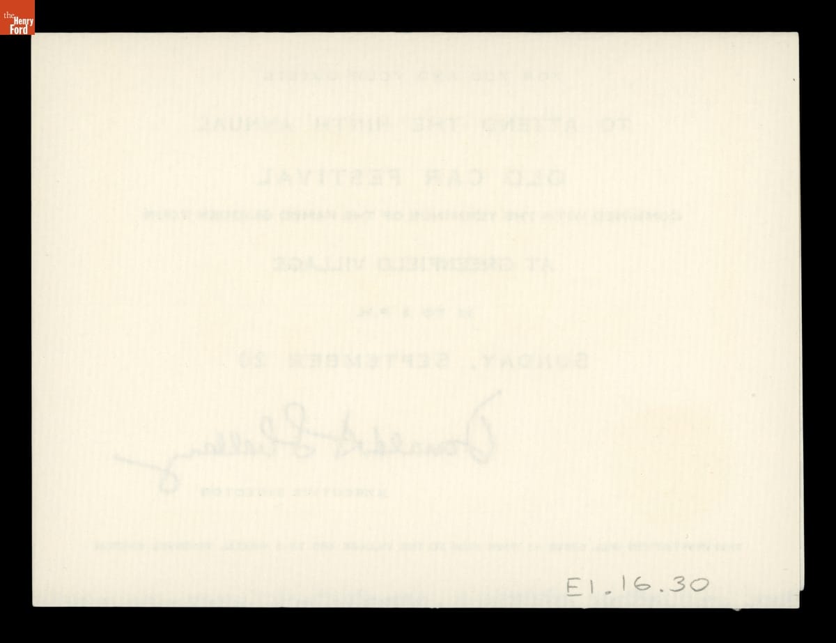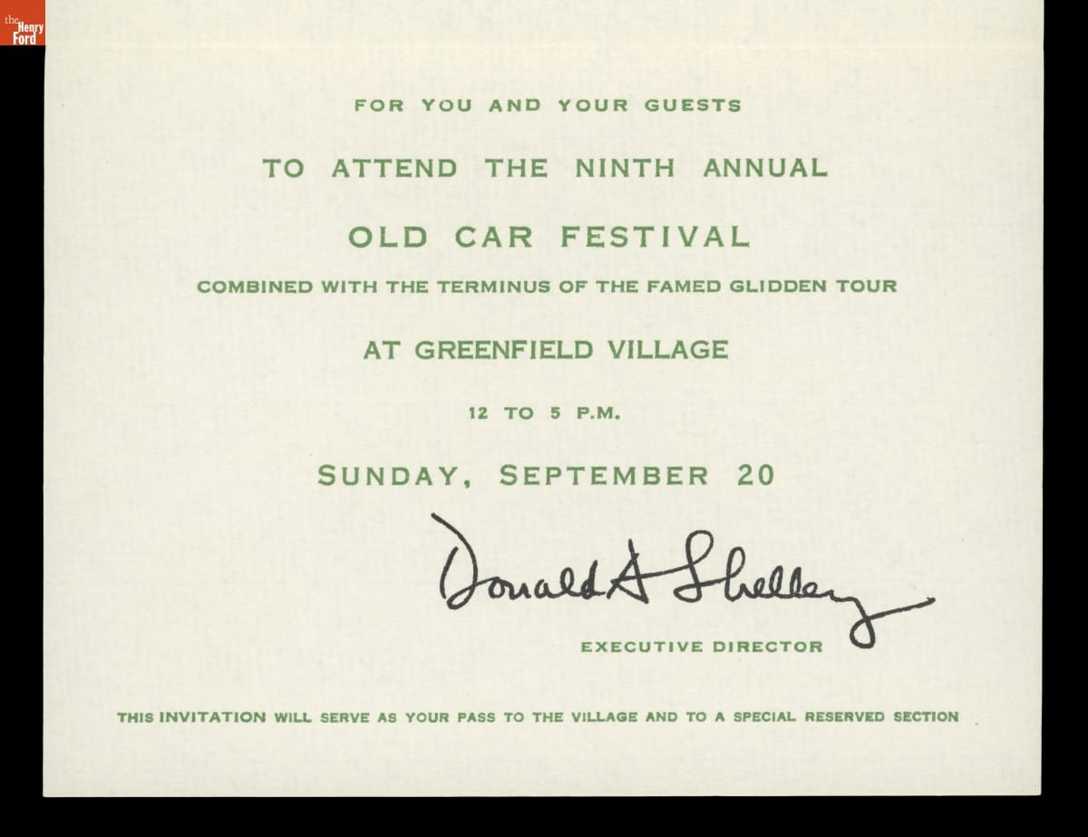 Invitation to Old Car Festival at Greenfield Village, September 1959