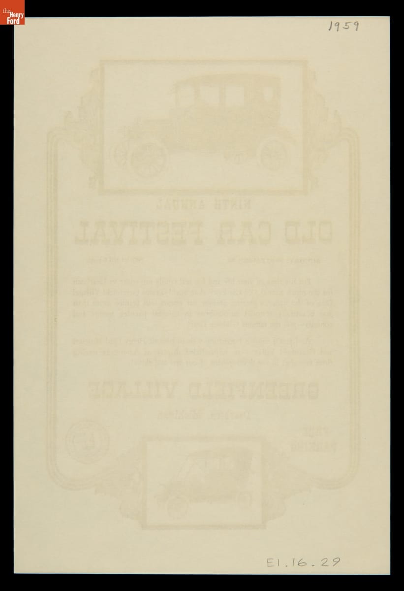Advertising Flier for Old Car Festival at Greenfield Village, September 1959