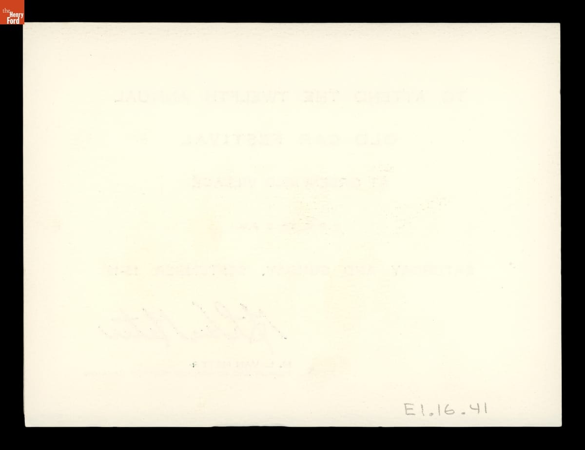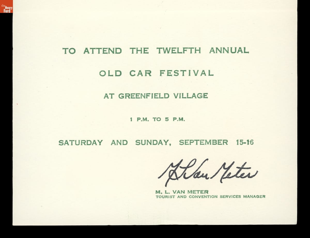 Invitation to Old Car Festival at Greenfield Village, September 1962