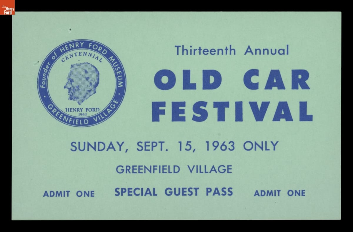 Pass to Old Car Festival at Greenfield Village, September 1963