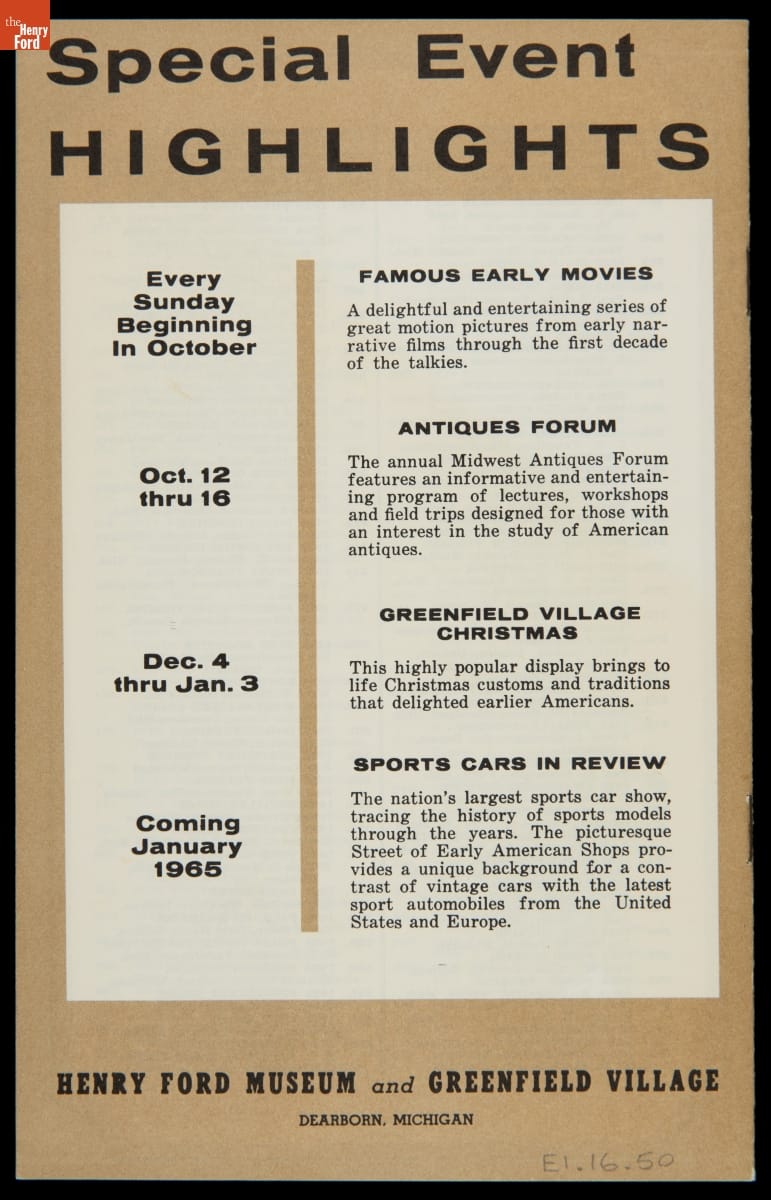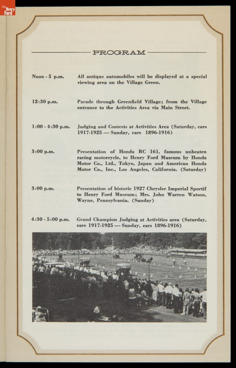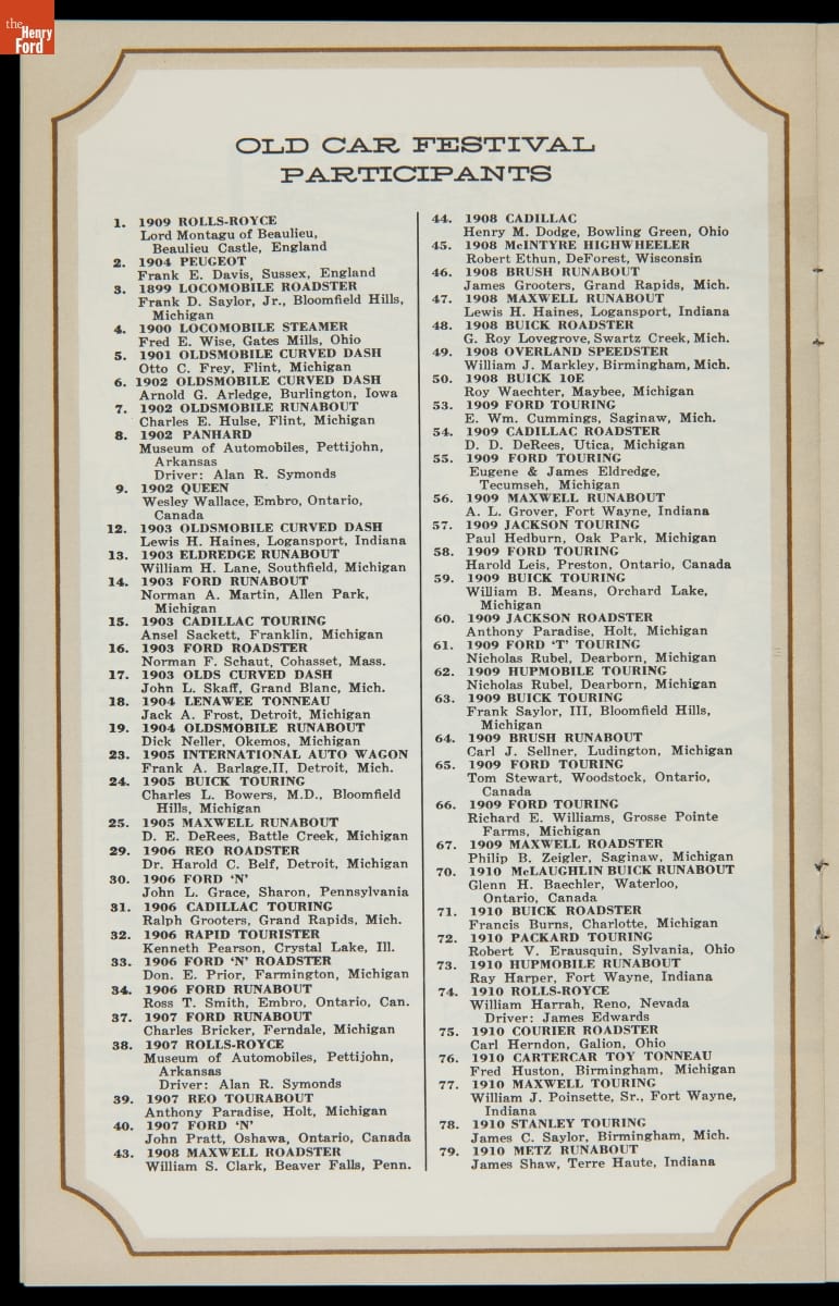 Held annually since 1951, The Henry Ford's Old Car Festival is the longest-running antique automobile show in the United States. While its specific events, activities and featured time periods have evolved over the decades, Old Car Festival's enthusiastic celebration of early American motoring remains unchanged.