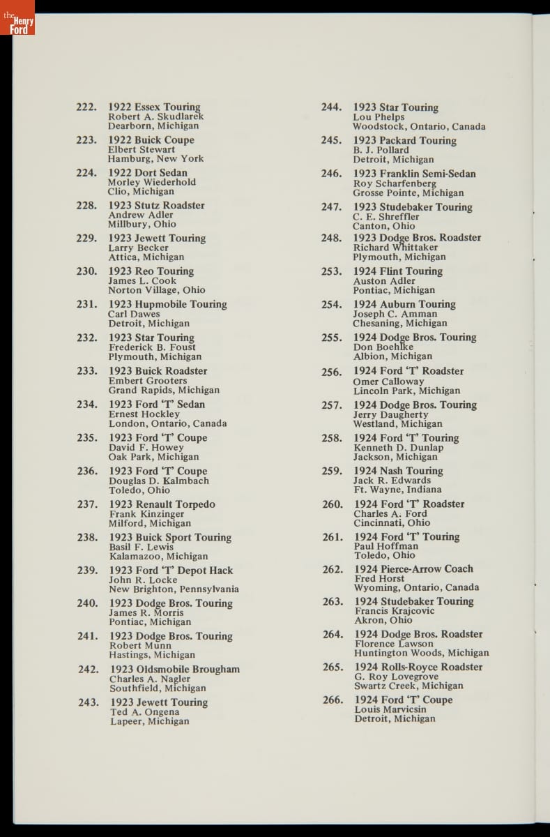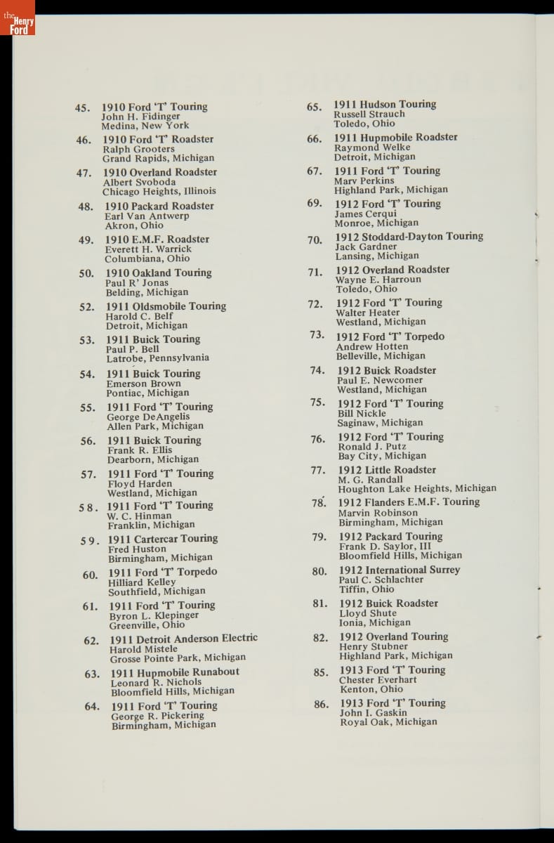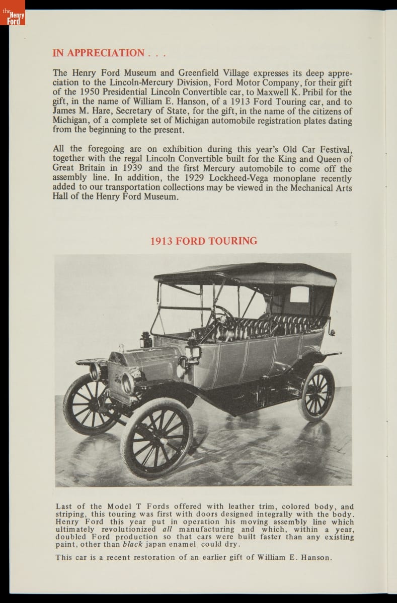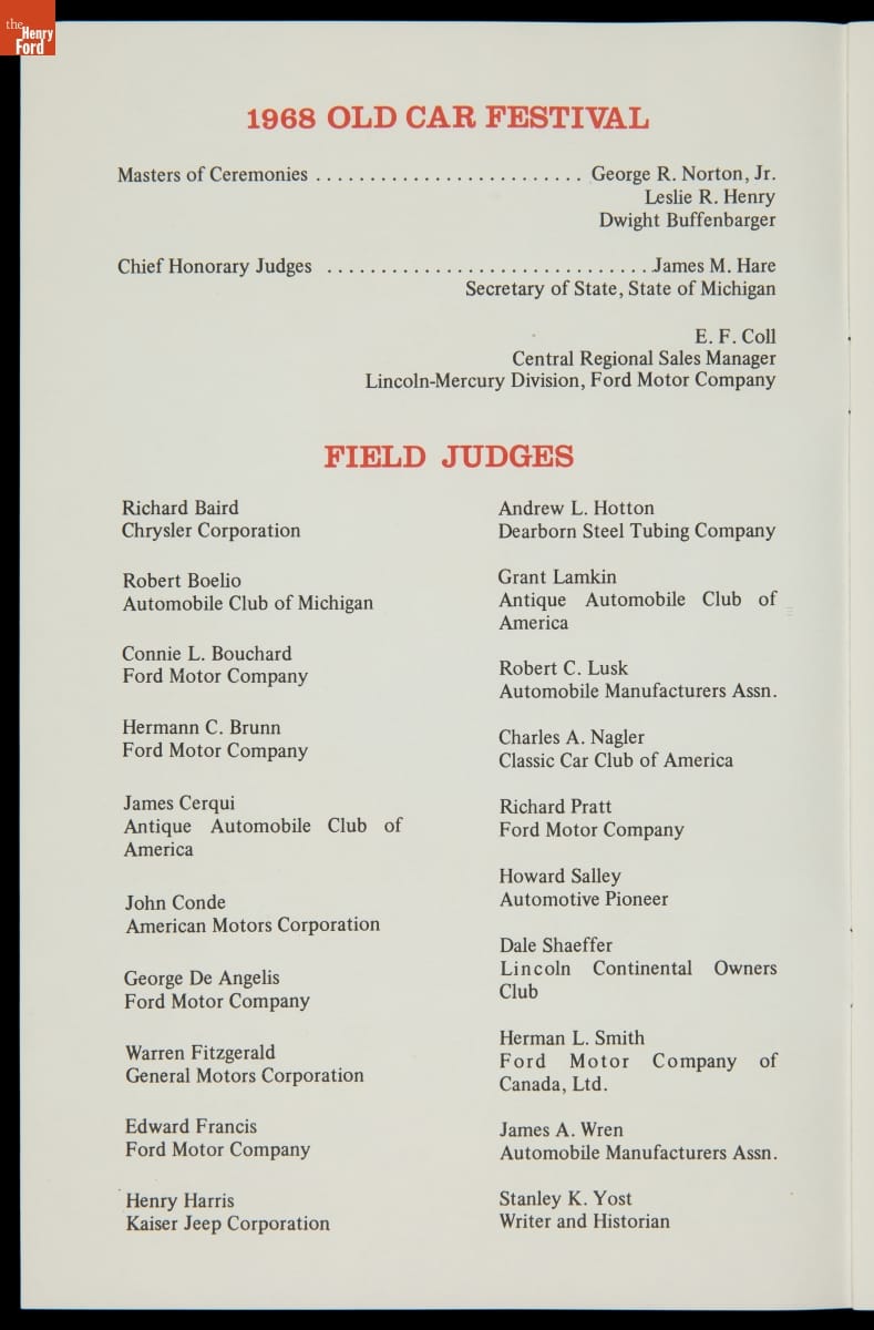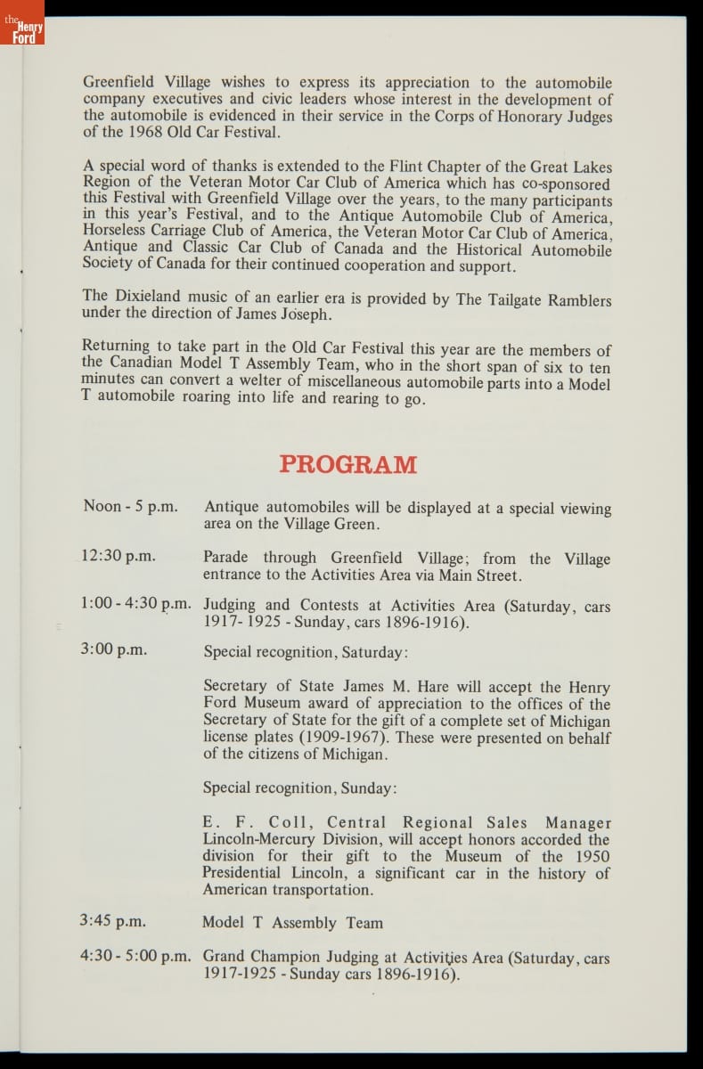 Program for Old Car Festival at Greenfield Village, September 1968