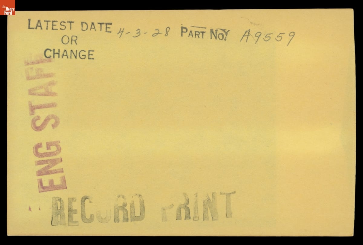 The Ford Motor Company created over a million parts drawings from 1903 to 1957. Many of these drawings specify engineering requirements for the components of Ford-made vehicles--including automobiles, trucks, tractors, military vehicles and Tri-motor airplanes. Others document assembly components, stages of casting and forging, or experimental designs. Beginning in the 1940s, Ford transferred the drawings to microfilm.