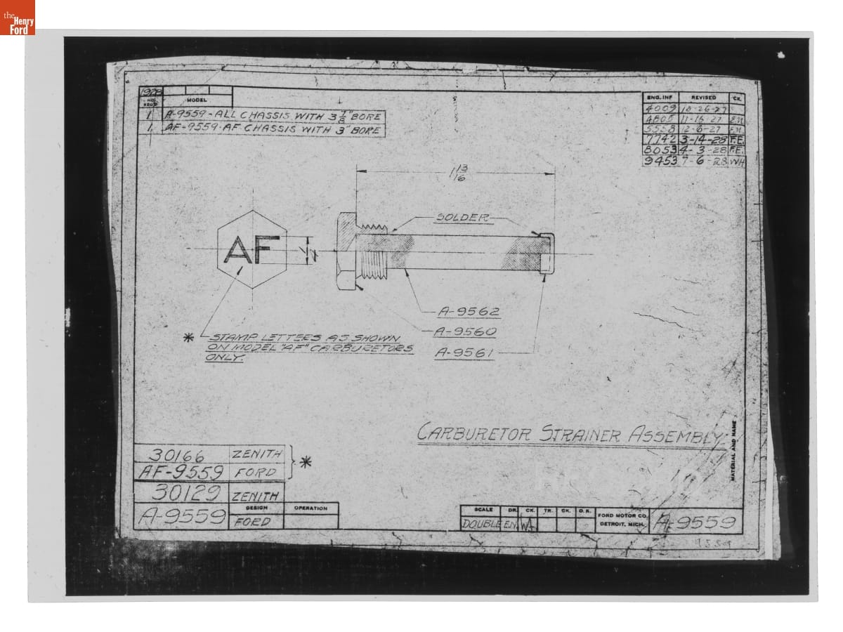 Drawing, "Carbruetor Strainer Assembly," Ford Model A, July 6, 1928