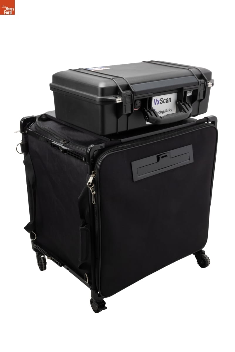 on various metal components on ballot box: