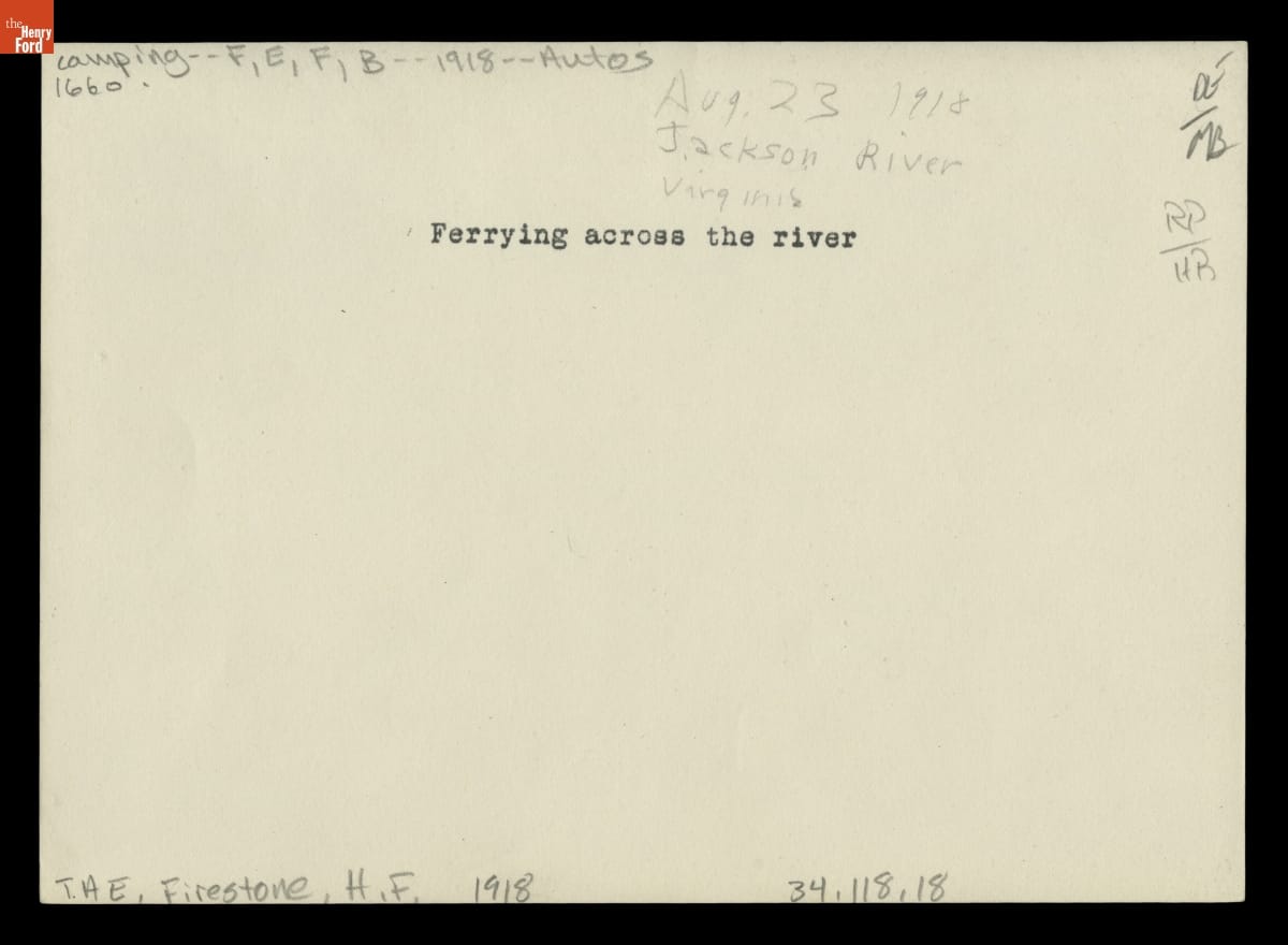 "Vagabonds" Camping Vehicles Ferrying across the Jackson River in Virginia, 1918