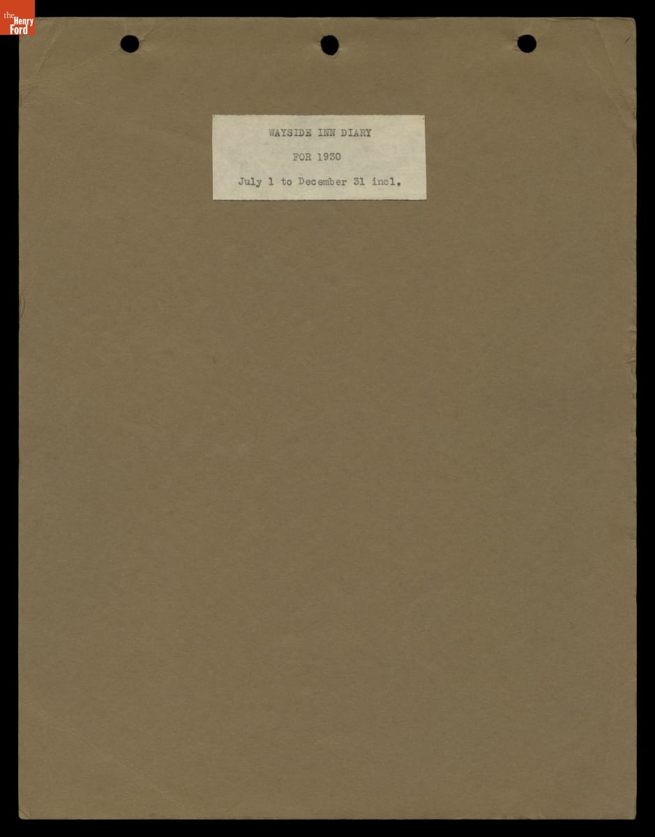 Wayside Inn Diary, July 1 - December 31, 1930