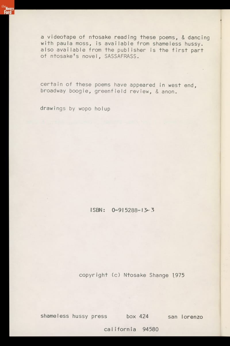 "For Colored Girls Who Have Considered Suicide/When the Rainbow is Enuf," 1975