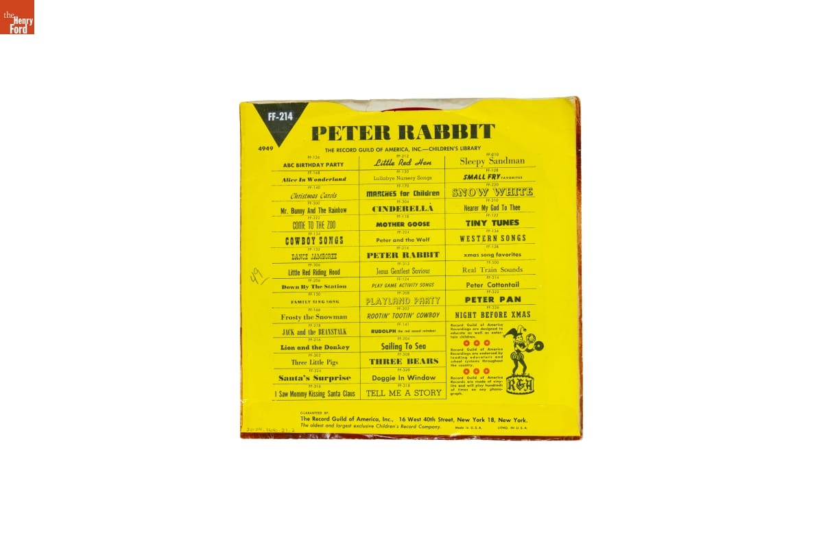FF-214 / PETER RABBIT / 45 rpm RECORD / WITH VOCAL AND FULL ORCHESTRA / THE RECORD GUILD OF AMERICA, INC. / record guild kiddie recordings vinylite-non-breakable / with normal usage