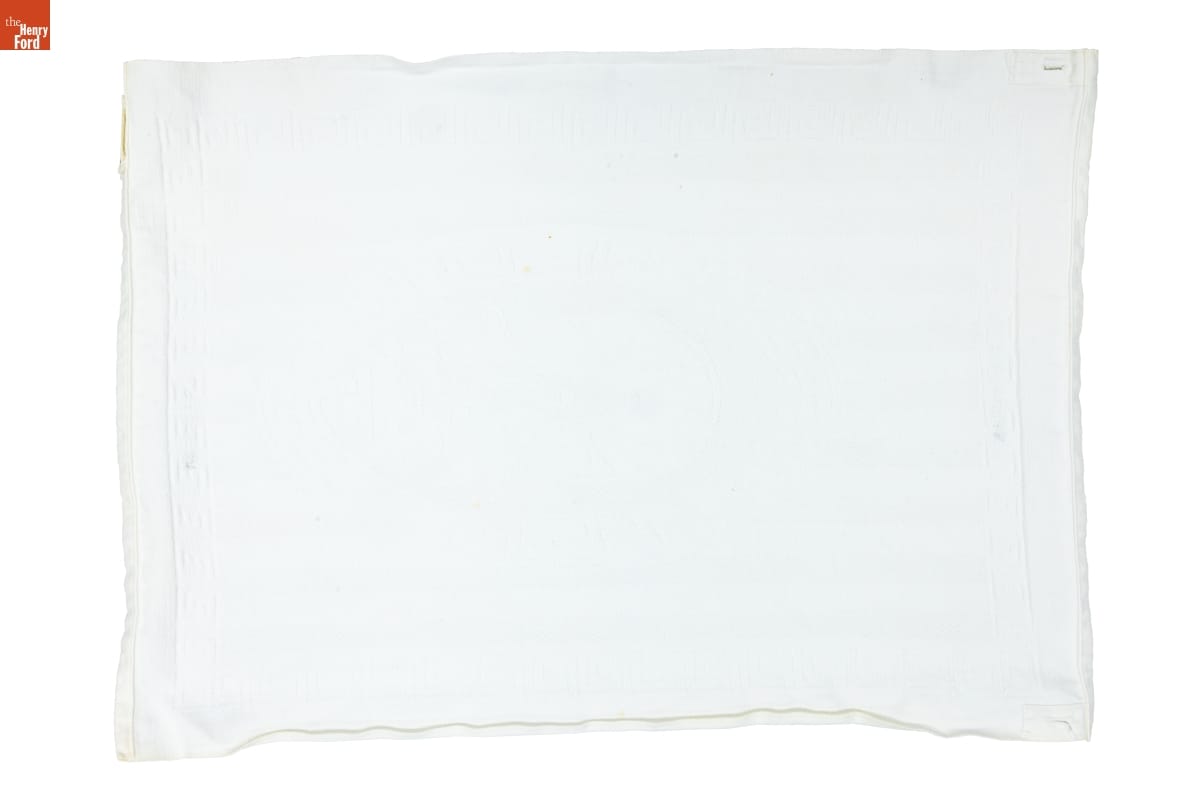From its founding in 1867 until its demise a century later, Pullman was synonymous with first-class travel on American railroads. The company built sleeping cars and operated them under contract with host railroads. For Black Americans, jobs as Pullman porters offered a pathway into the middle class, though the work was difficult. This hand towel was used on a Pullman car.