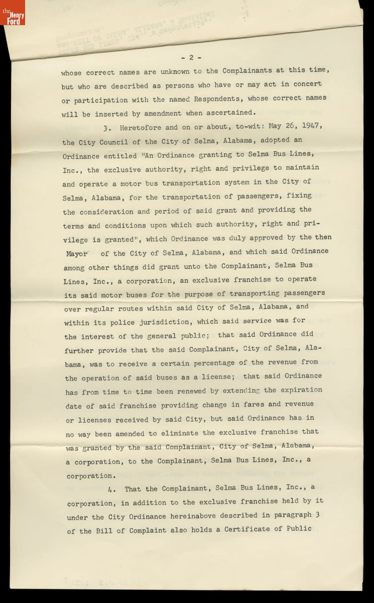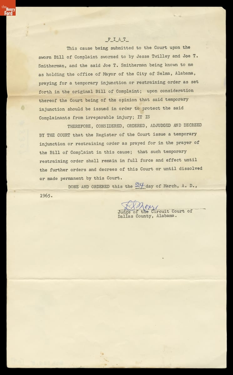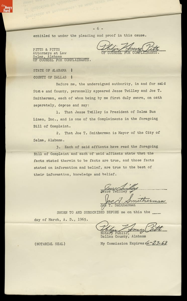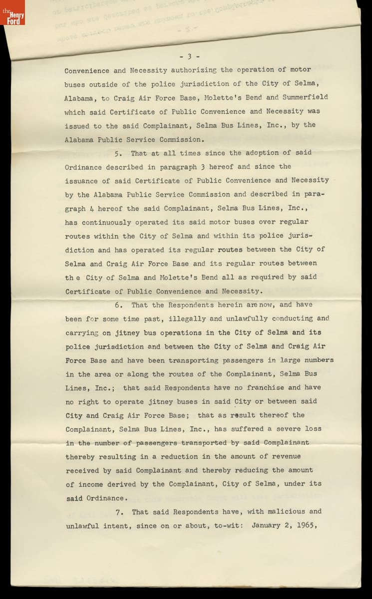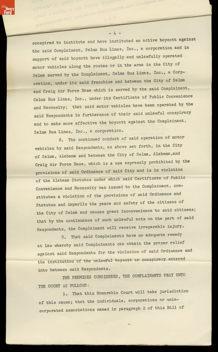 Injunction Filed by Selma Bus Lines and City of Selma, Alabama, against Martin Luther King, Jr. and Voting Rights Protesters, March 24, 1965