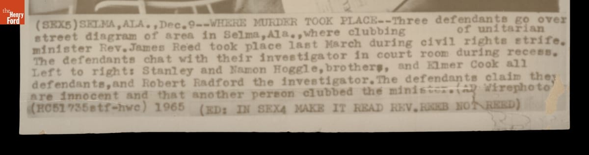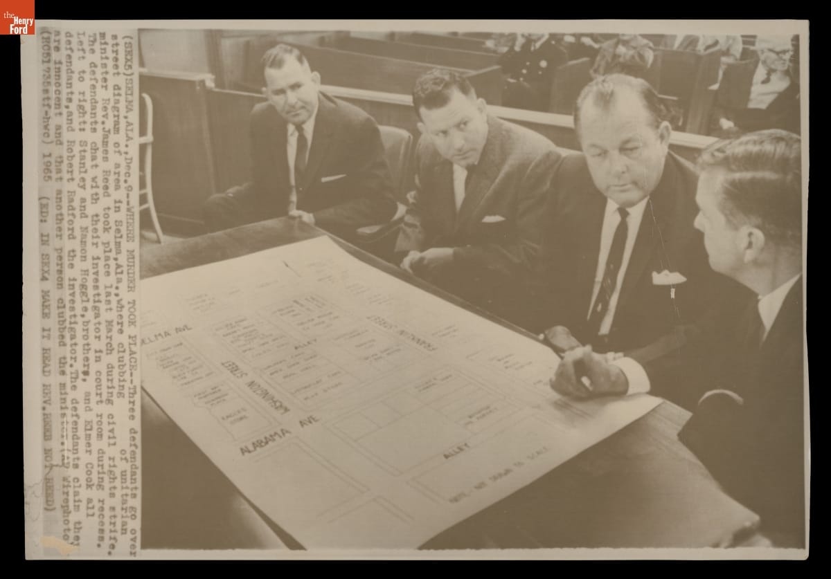 Defendants in the Rev. James Reeb Murder Trial Examine a Street Diagram of Selma, Alabama, December 9, 1965