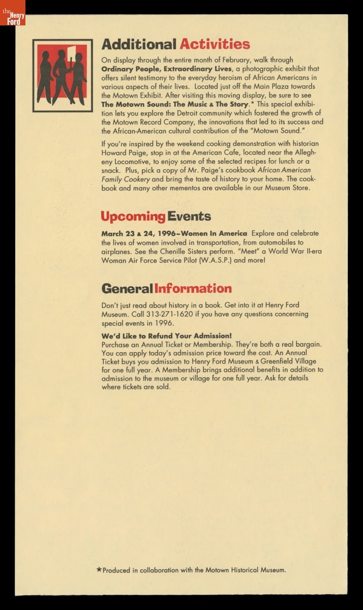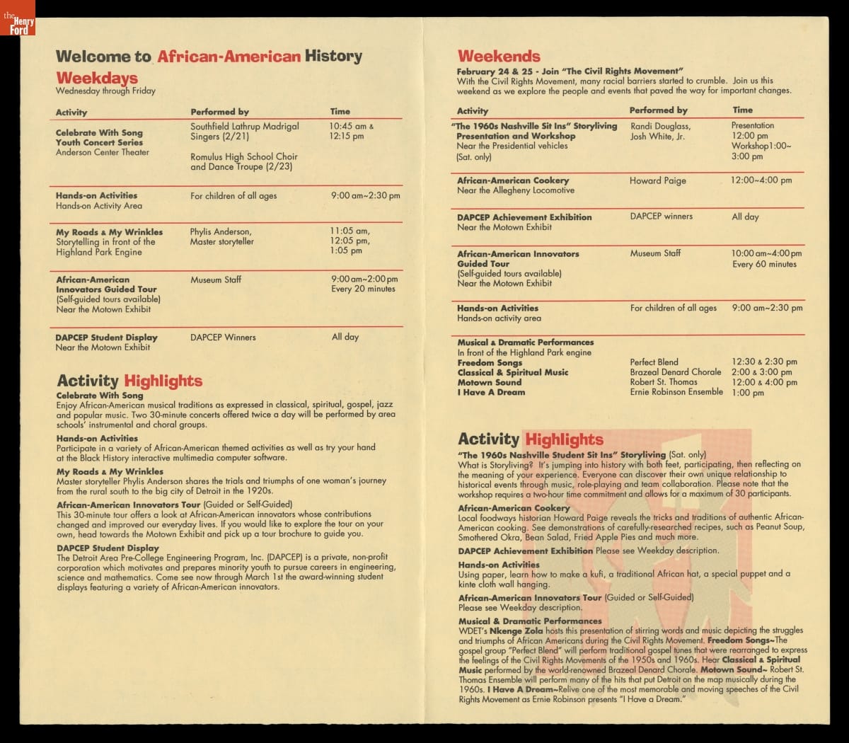 Brochure, "Celebrate Black History at Henry Ford Museum," January-February 1996