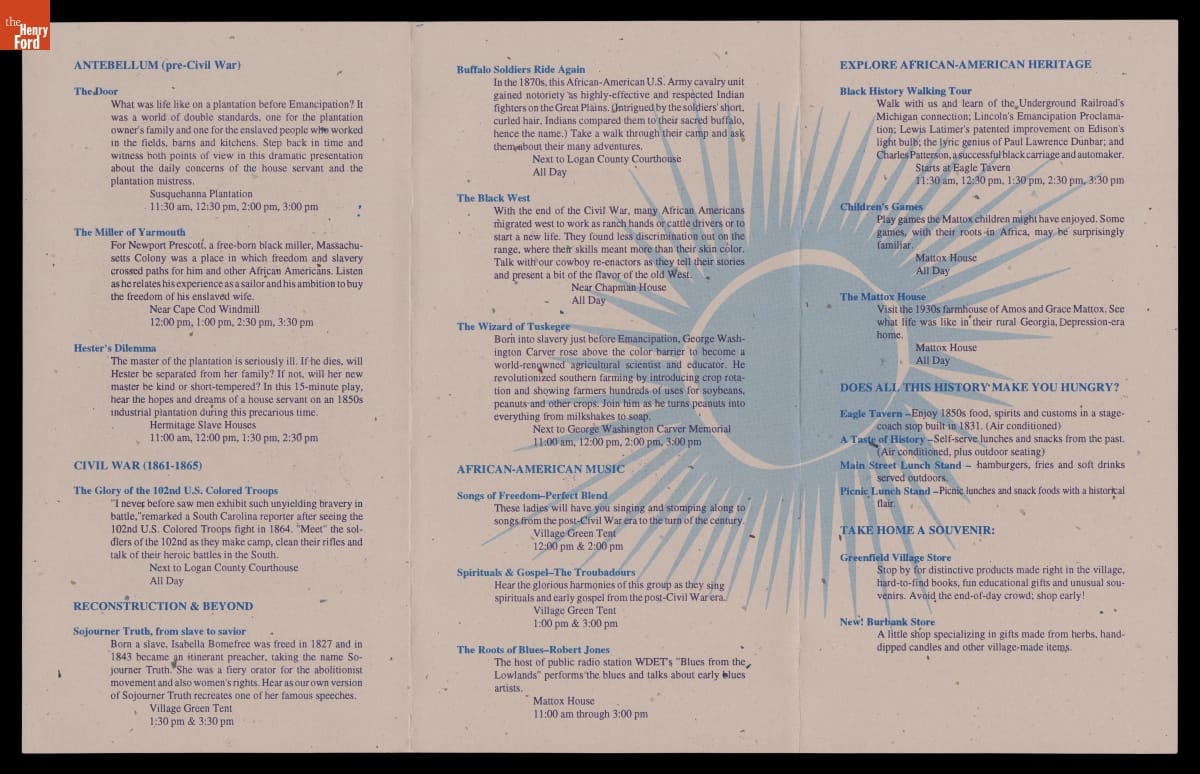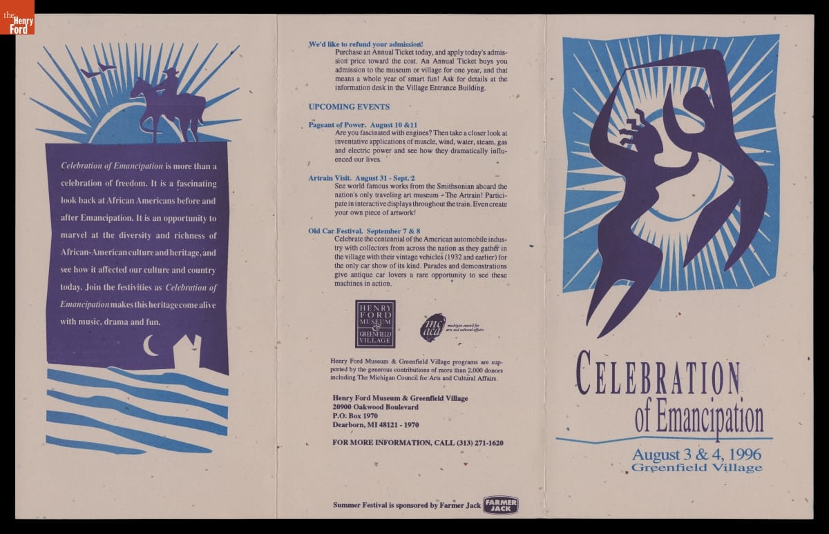 Brochure, "Celebration of Emancipation" in Greenfield Village, August 1996