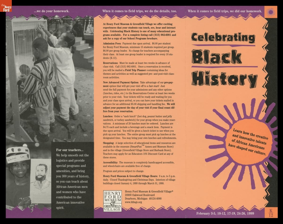 "When It Comes to Field Trips, We Did Our Homework, Celebrating Black History," Henry Ford Museum, February 1999