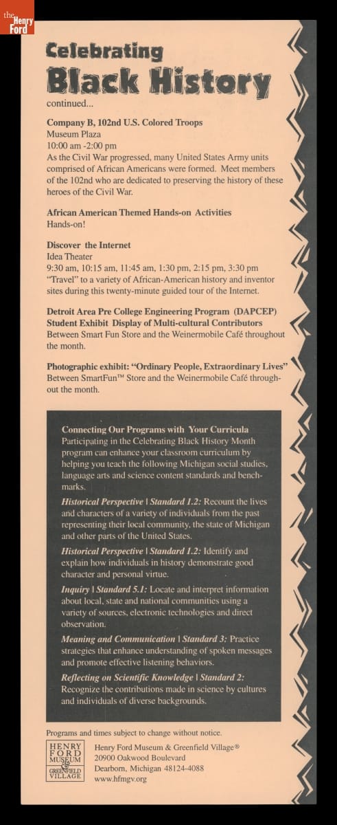 Brochure, "Celebrating Black History," Henry Ford Museum, February 1999