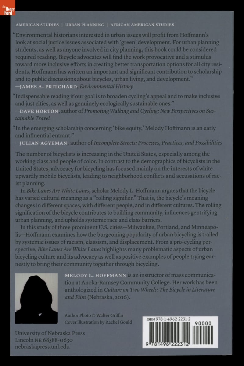 Melody L. Hoffmann examined the effects of race and class on bicycle advocacy and policy in her 2016 book Bike Lanes are White Lanes. In the early 21st century, activism and urban planning largely focused on the interests of white and upwardly mobile bikers, overlooking people of color and working-class riders.