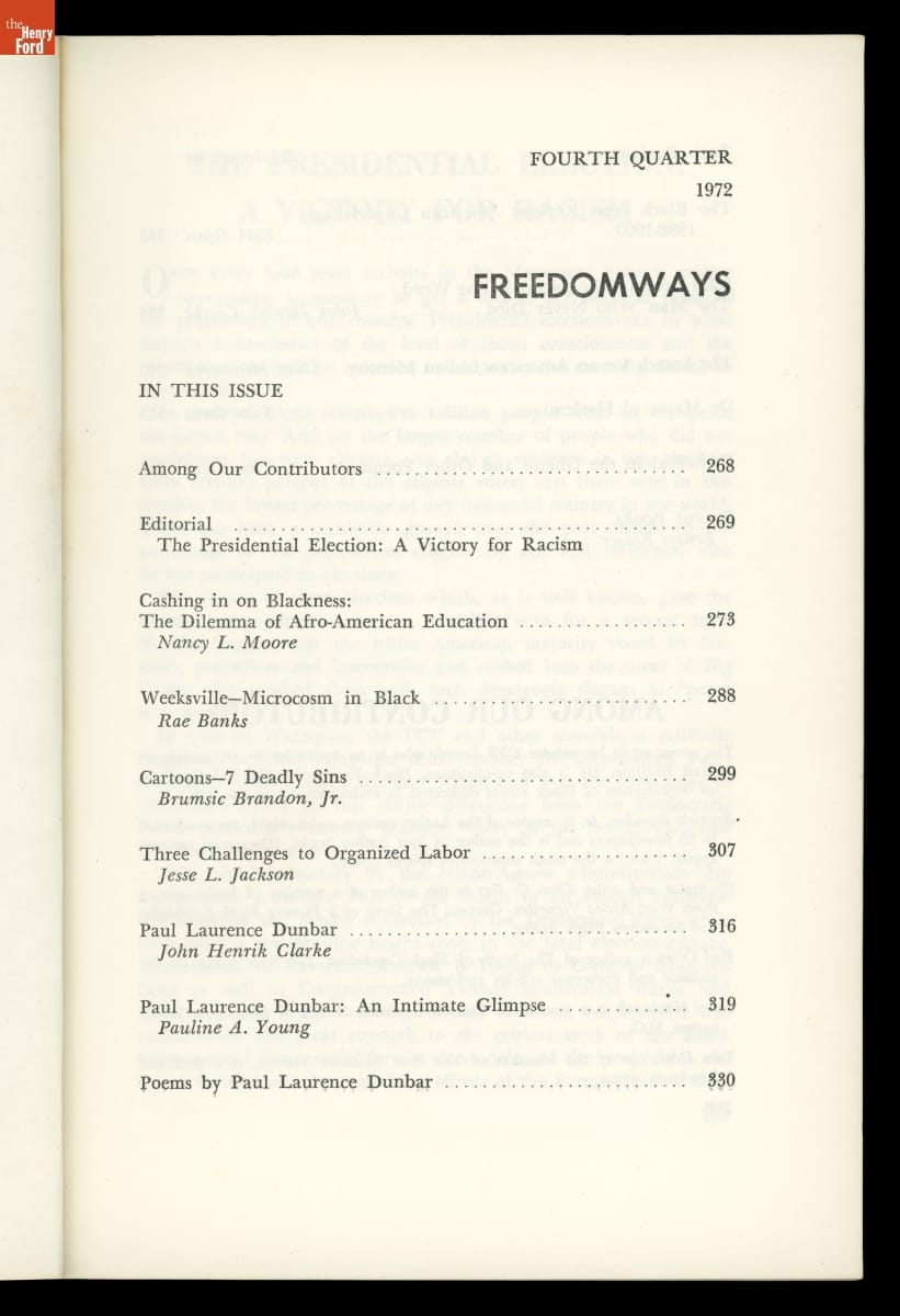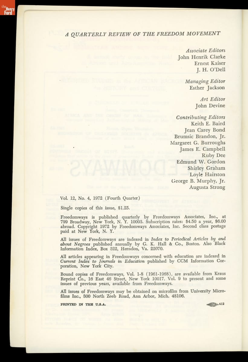 "Freedomways," Vol. 12, No. 4, Fourth Quarter, 1972