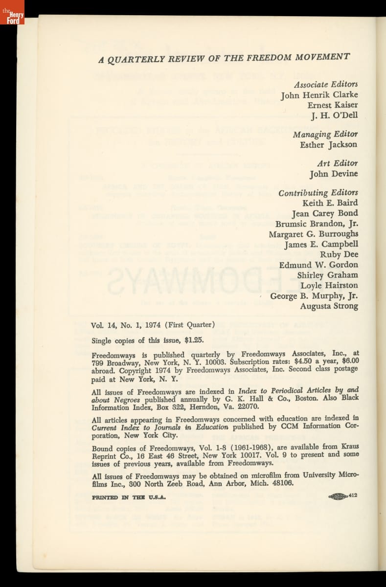 "Freedomways," Vol. 14, No. 1, First Quarter, 1974