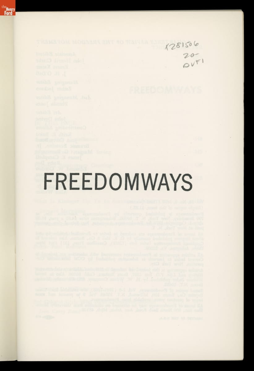 In 1961, Louis Burnham, Edward Strong, and W. E. B. Du Bois founded Freedomways, the leading African American theoretical, political, and cultural journal of its time. The journal included written works by leading Black authors, artists, politicians, and activists. The journal also reported on the political movements of the era, especially the American civil rights movement. Publication ceased in 1985.