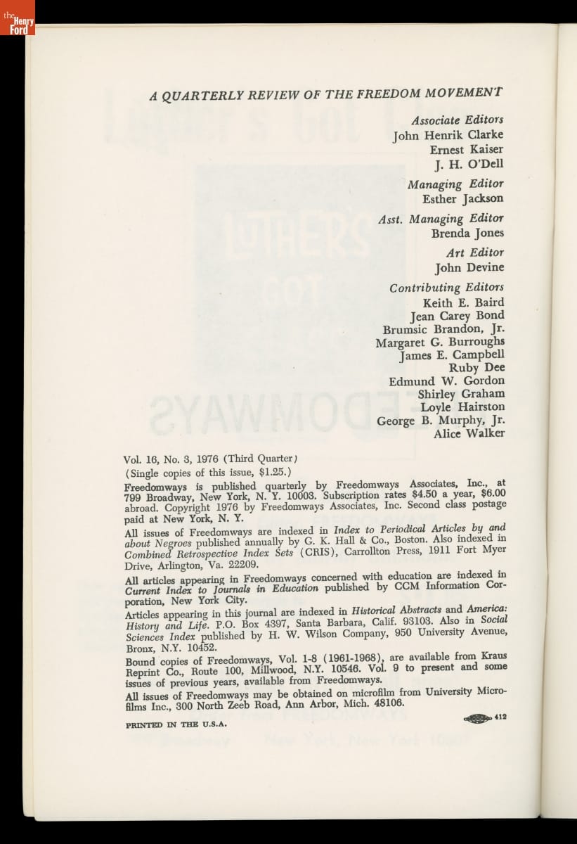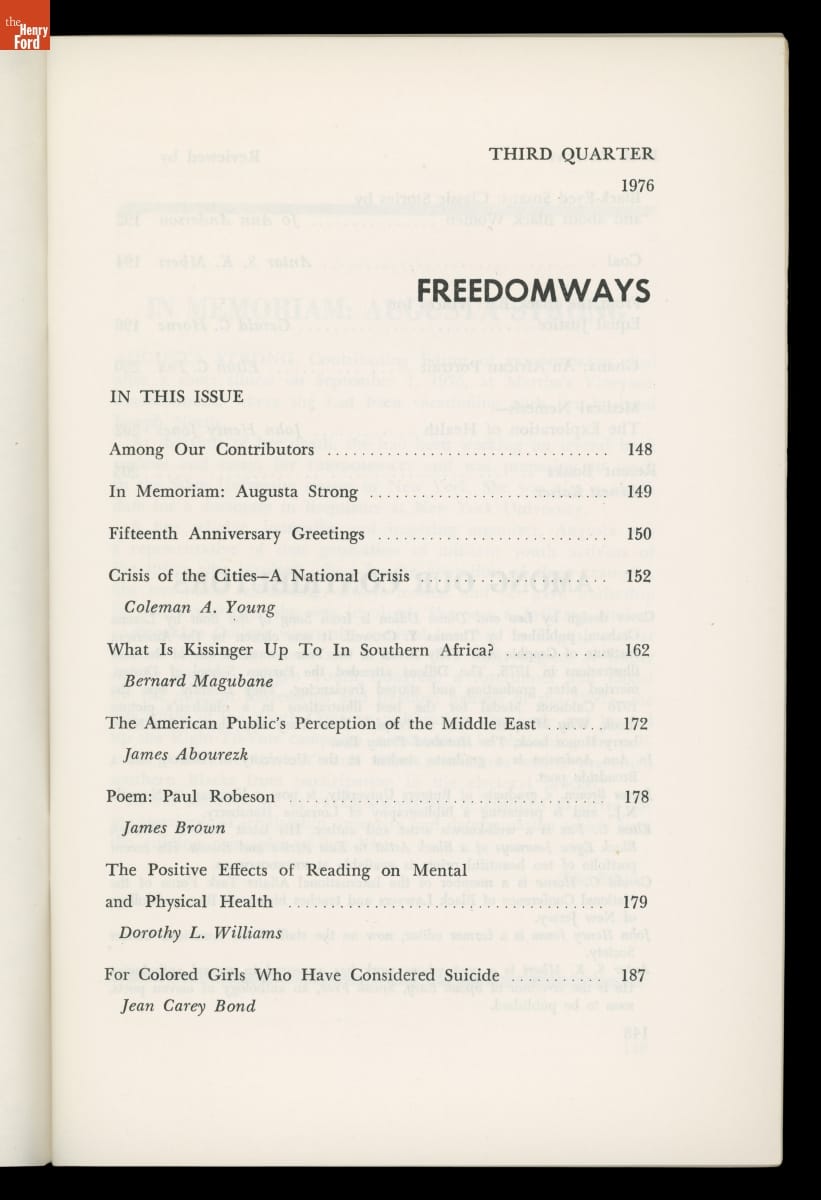 "Freedomways," Vol. 16, No. 3, Third Quarter, 1976