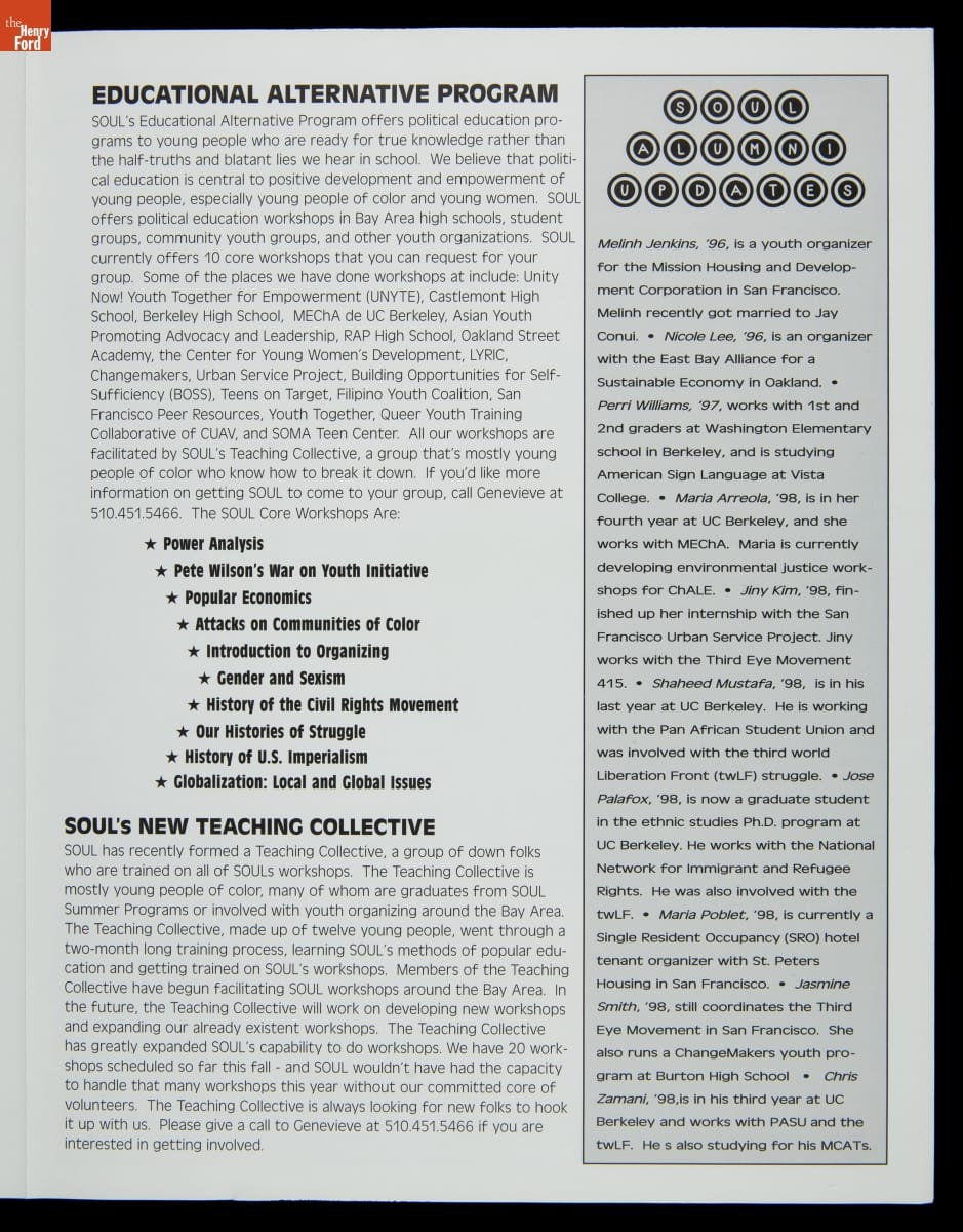 "School of Unity & Liberation Newsletter," 1999