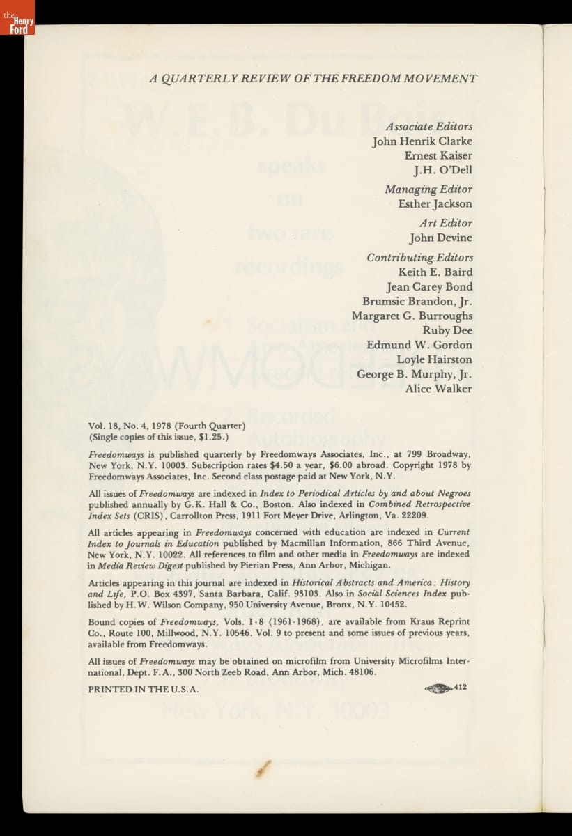 "Freedomways," Vol. 18, No. 4, Fourth Quarter, 1978