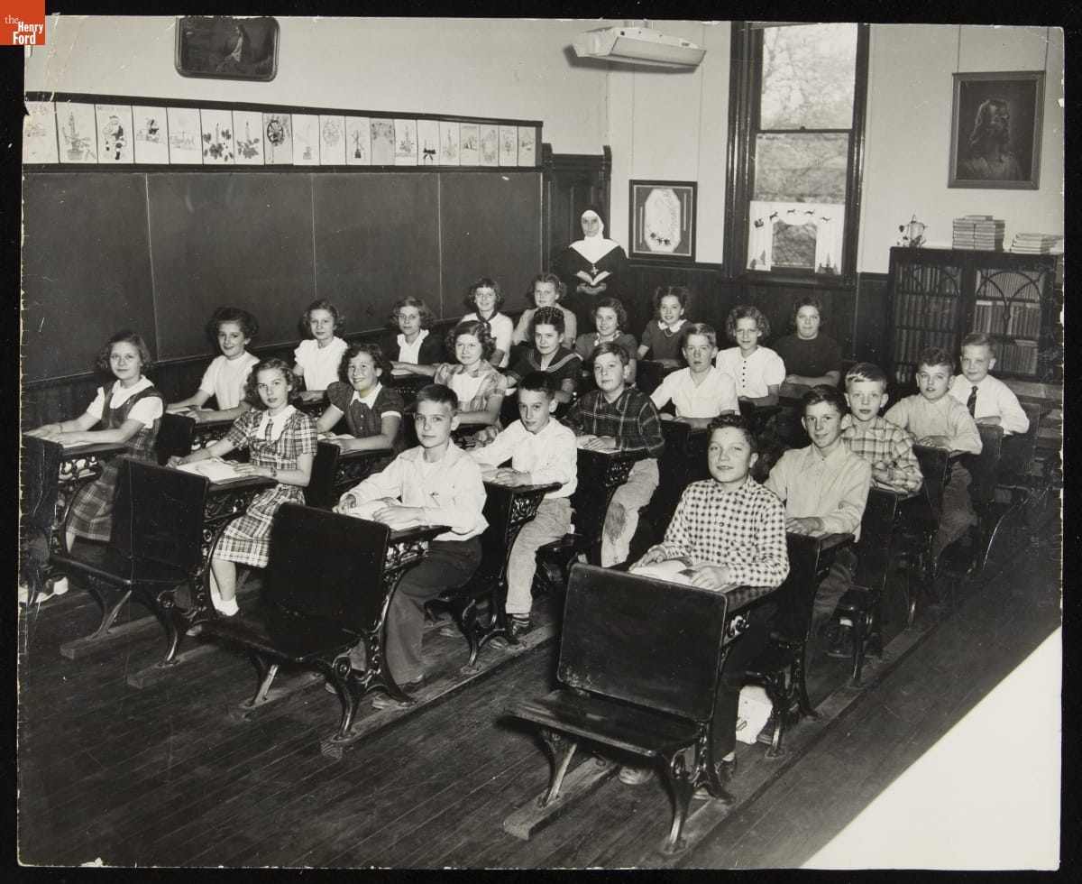 A Nun and Her Students in a Classroom at St. Hedwig School, South Bend, Indiana, 1950
